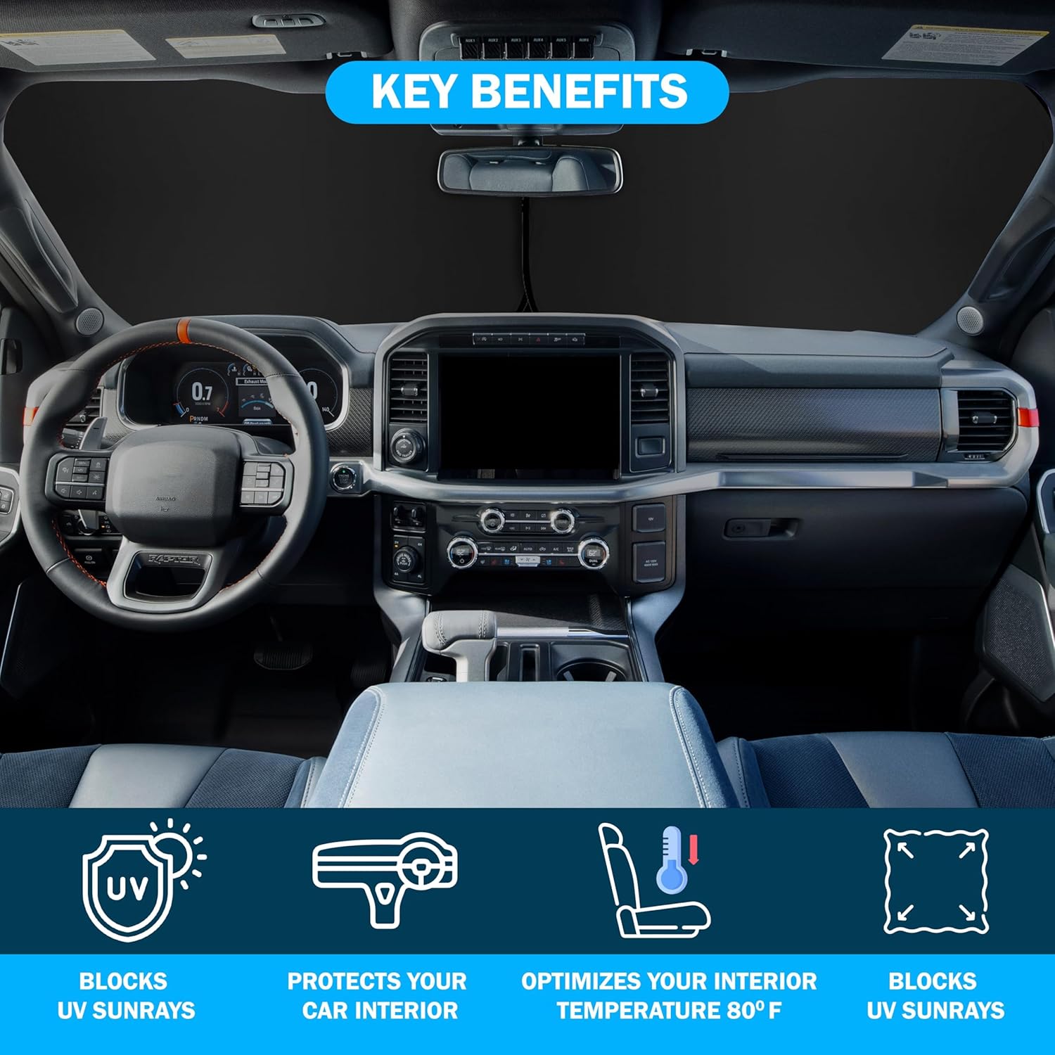 - Effortless Installation & Removal: No tools required! Simply unfold the windshield cover for trucks and place it on your truck windshield sun shade for instant sun-blocking protection as it works great as a sun visor for truck front windshield.