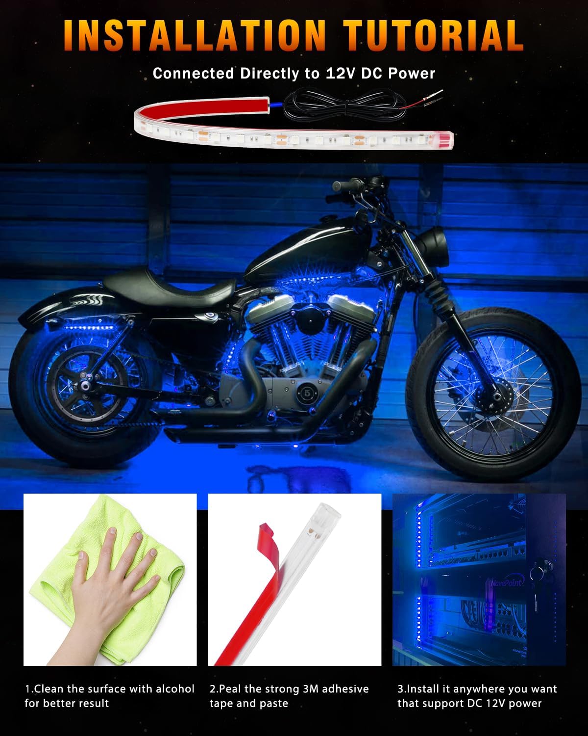 - 【Wide Applications】This car led strip lights can be used for Car Truck Motorcycles Boat Led Atmosphere decoration light Strip for footwell, front grille, rear trunk, under car body or any surface you want; Also used for home cabinet floor light Decoration Light indoor outdoor, Christmas , New Year Festival, KTV, clubs, shopping malls, Party decoration, universal for DC 12V power source.