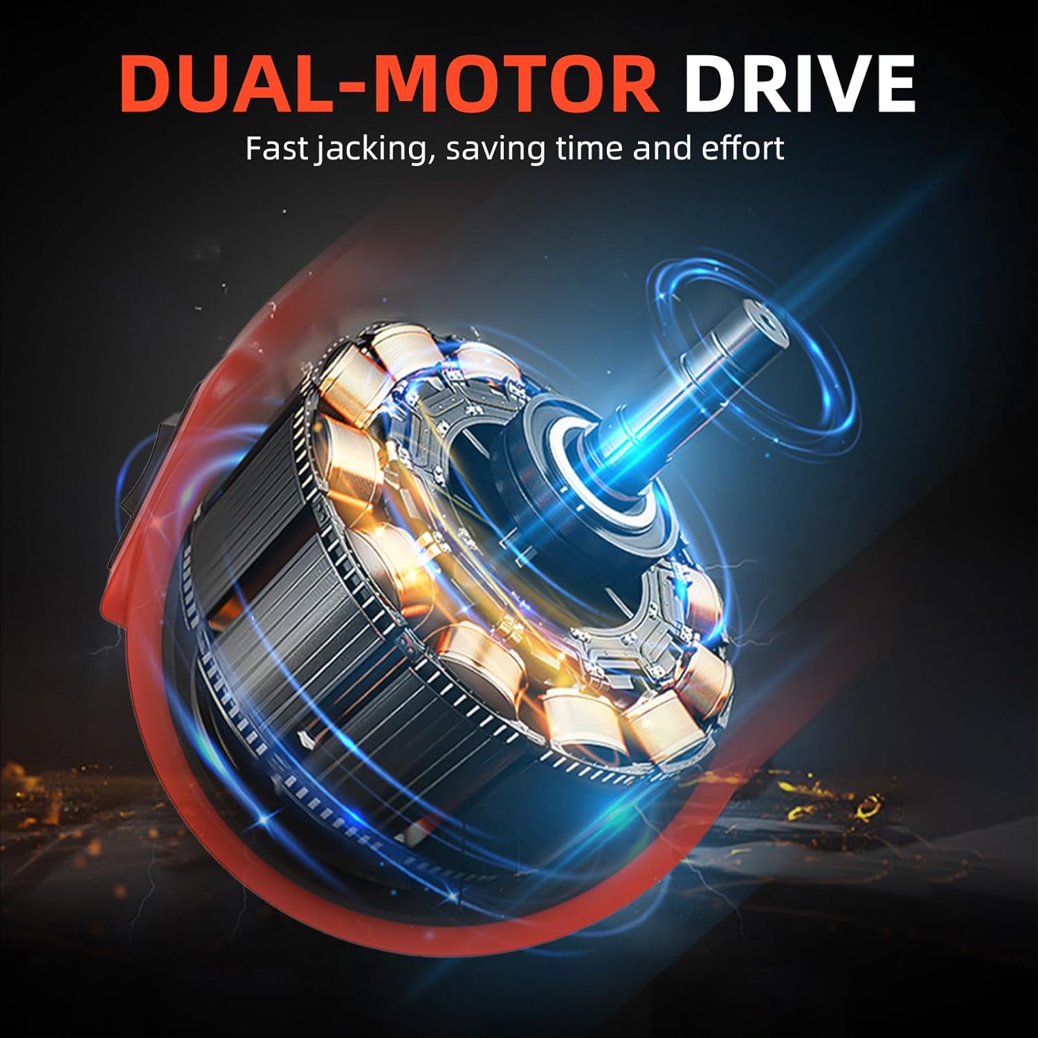 - Upgraded Car Jack: The hydraulic jack offers a more stable chassis and a hydraulic for load-bearing capacity. With a dual-motor drive, the car can be easily lifted in 1 minute, with a lifting range of 5.9”-14”/10”-17.7”
