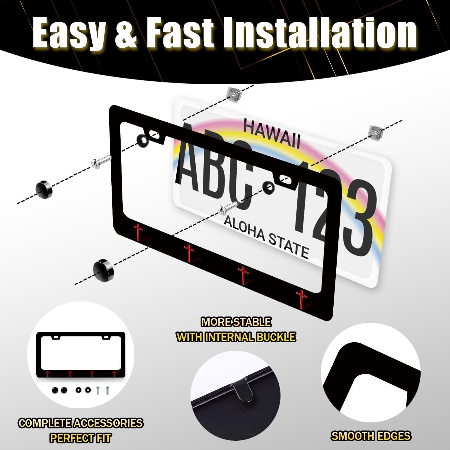 Jesus Cross License Plate Frame Red Christian Cross License Plate Holder Funny License Plate for Car Decoration Stainless Steel Religiou Car Accessories with Screws Men Women 12.3" x 6.3"