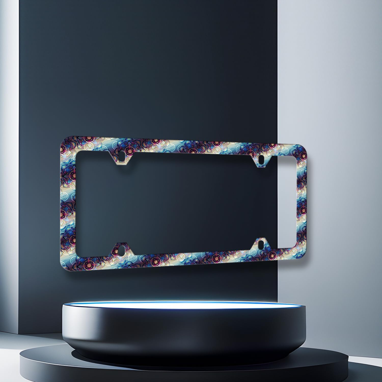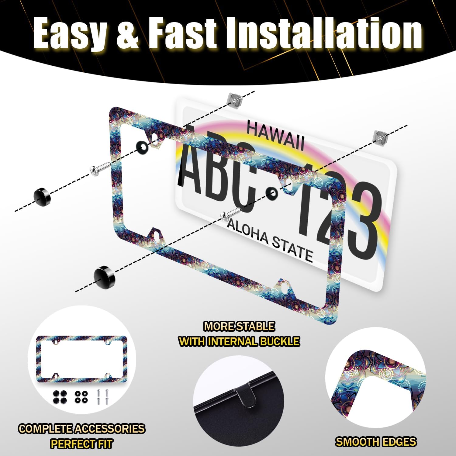 Blue Purple Mandala Flowers License Plate Frame Boho Floral License Plate Holder Colorful License Plate for Car Decoration Stainless Steel Car Accessory with Screws Men Women 12.3" x 6.3"