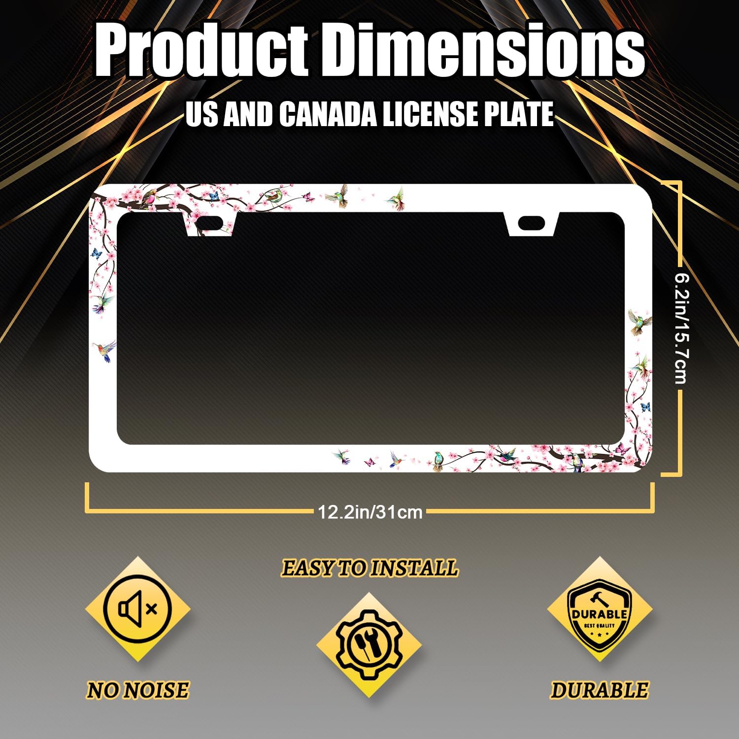 - The size of the license plate frame is: 12.3" x 6.3" , it fits all standard size US vehicle license plates. the stylish design frame fits on your car license plate.