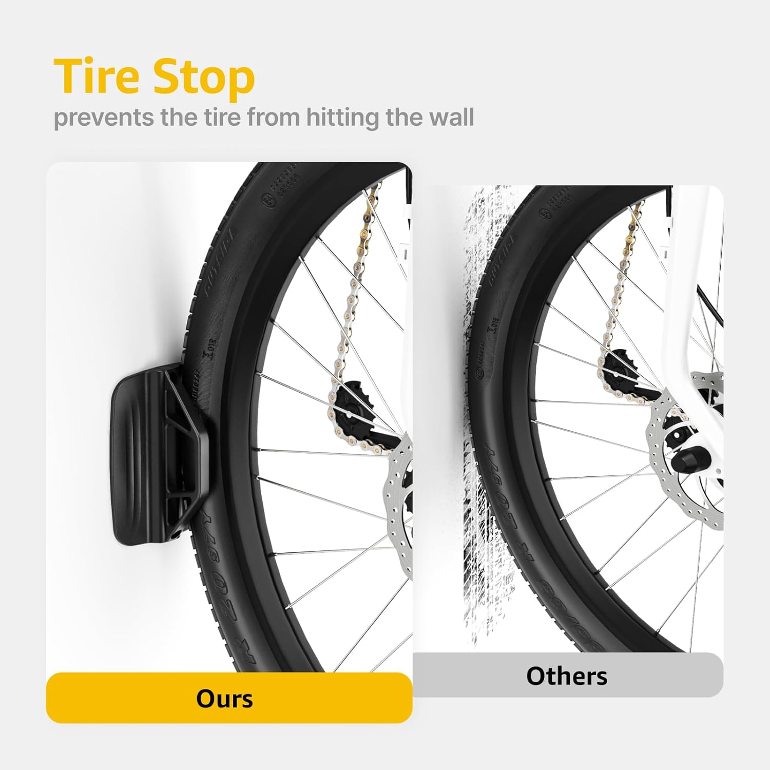 - 【SWIVEL DESIGN】 The swivel design stores bikes with ease, whether center, left, or right angled positions. The swivel bike wall mount allows you to store bike flush against the wall, freeing up space in your garage or apartment. This bike rack is an excellent choice for maximizing the use of limited space. Free-up your valuable floor space, keep your garage or indoor space tidy and clutter-free with our bike wall hanger.