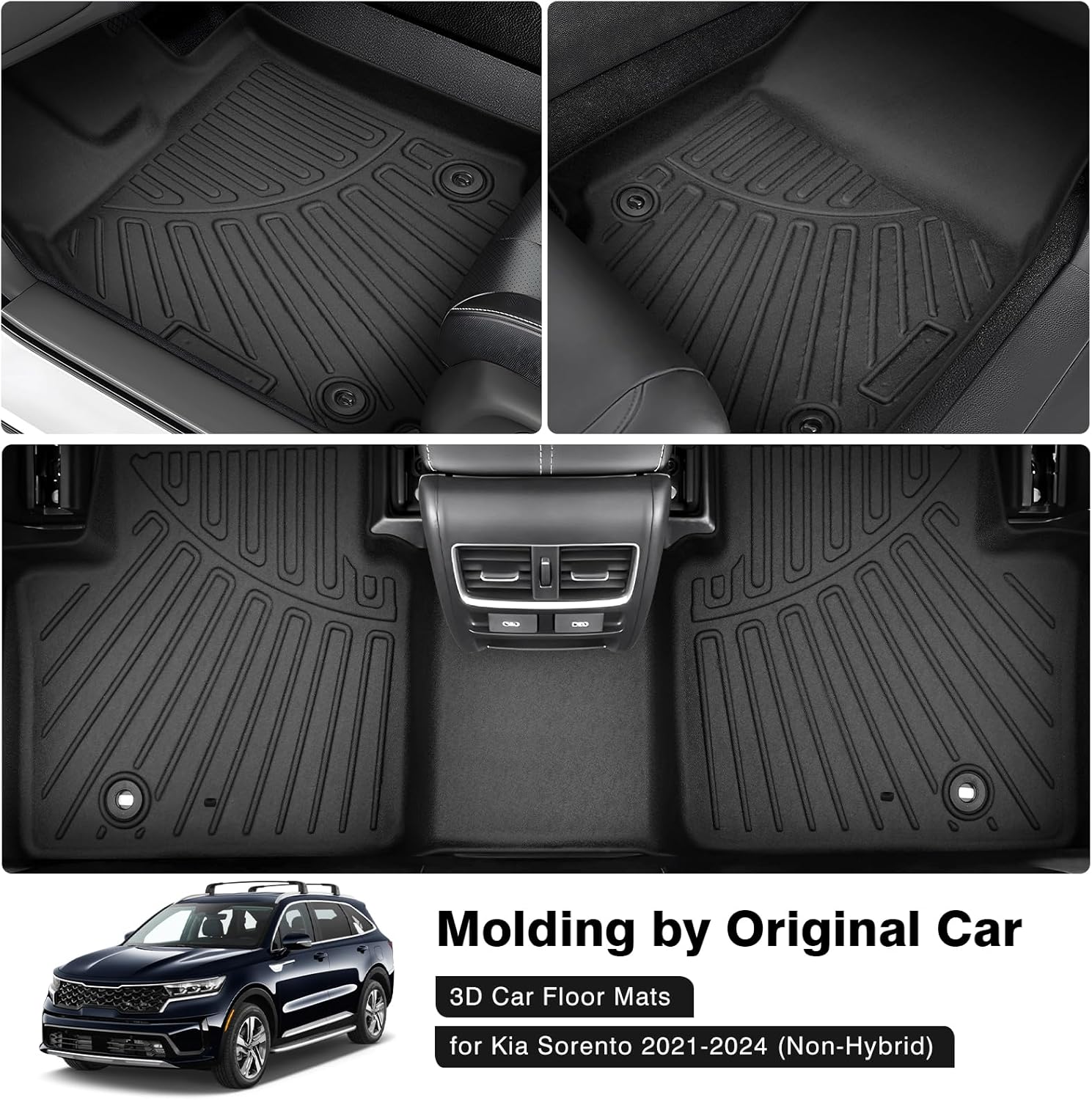 - ăCrafted for Sorento Exclusivityă Introducing premium floor mats, that seamlessly integrate with your Kia Sorento 2021 2022 2023 2024 2025 (Non-Hybrid) through precise 3D-scanned design, eliminating the need for trimming.