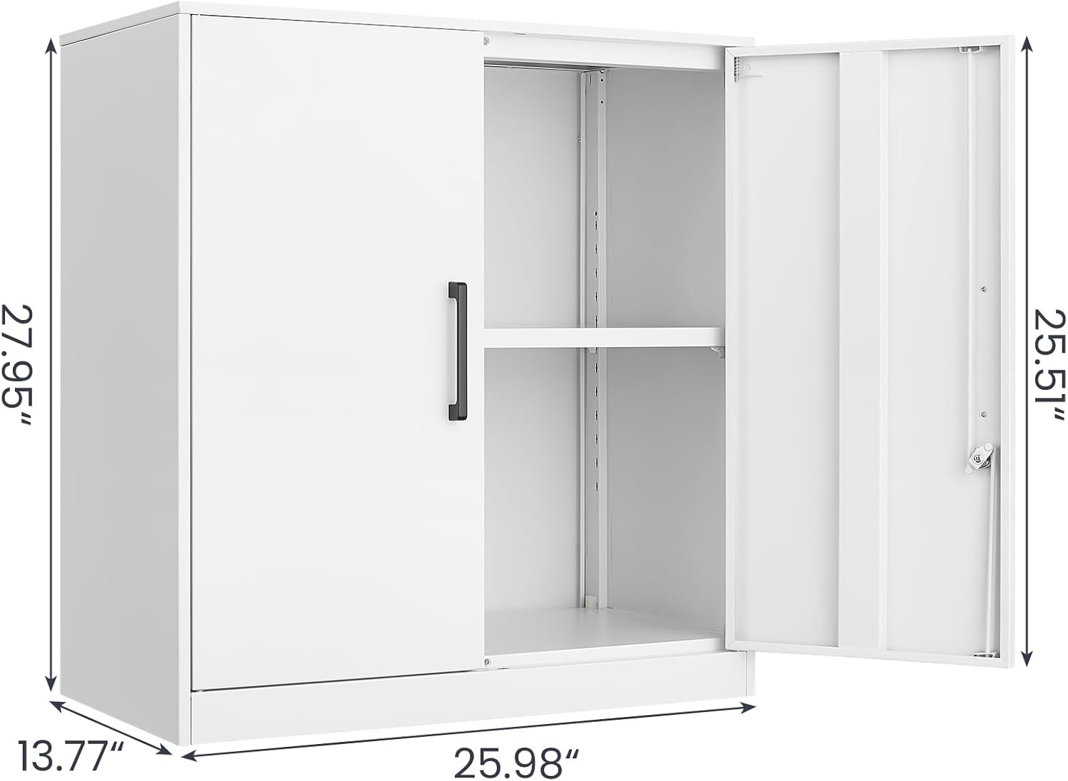 - ăLarge Storage SpaceăThis white wall cabinet dimension is 13.77"D x 25.98"W x 27.95"H,Weight:30.8 lbs,plenty space storing tools, files, dishes and more. It is suitable for home, office, garage, school, store and warehouse, especially for kitchen and garage use.