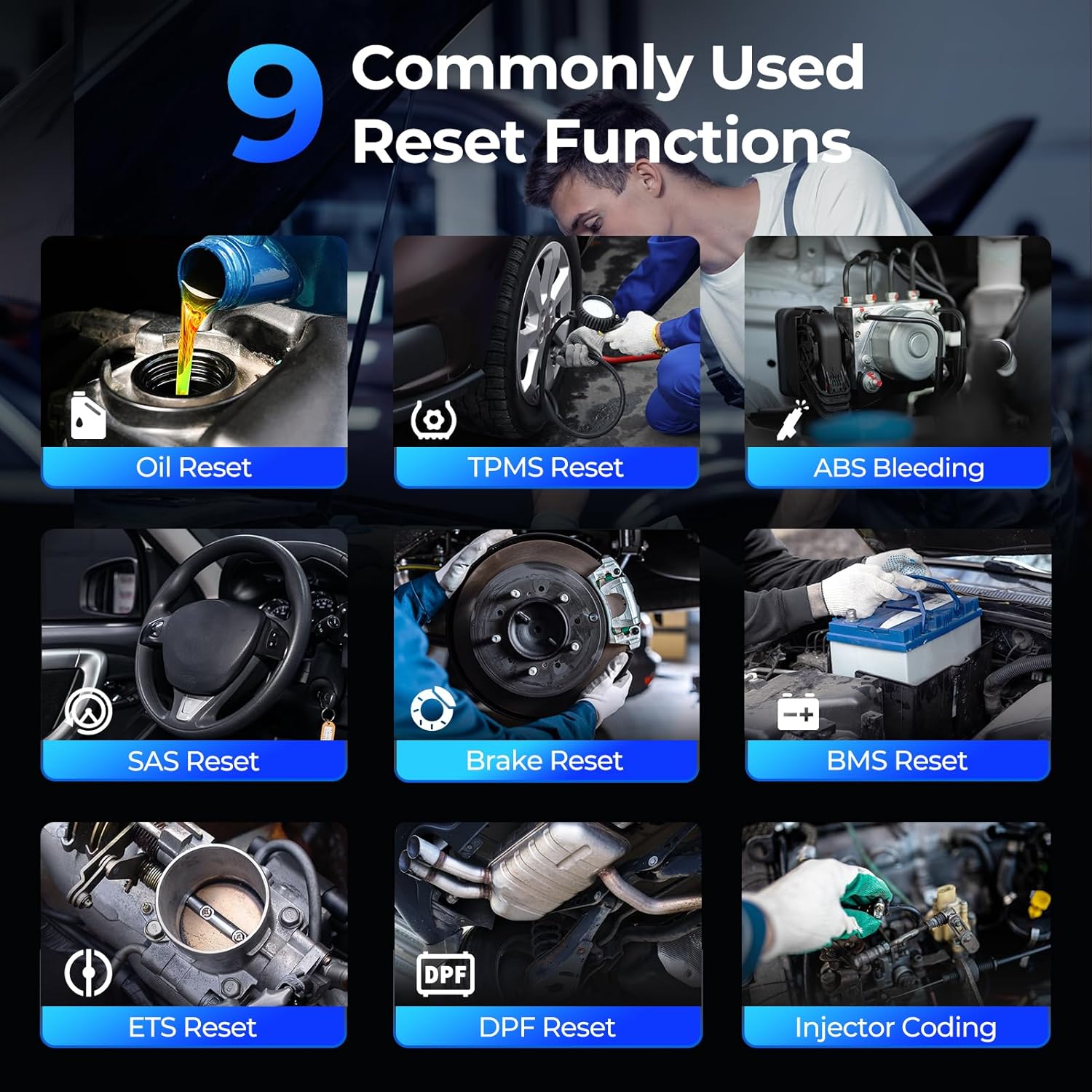- 9 Hot Reset Functions: Say goodbye to costly trips to the repair shop for resetting after routine maintenance such as changing oil, replacing tires, or installing new brake pads. The AD600S diagnostic tool effortlessly tackles common automotive challenges with just one click. Cut costs and cut the hassle with its 9 reset functions: Oil/BMS/ABS/SAS/EPB/DPF/TPMS/Throttle/injector coding