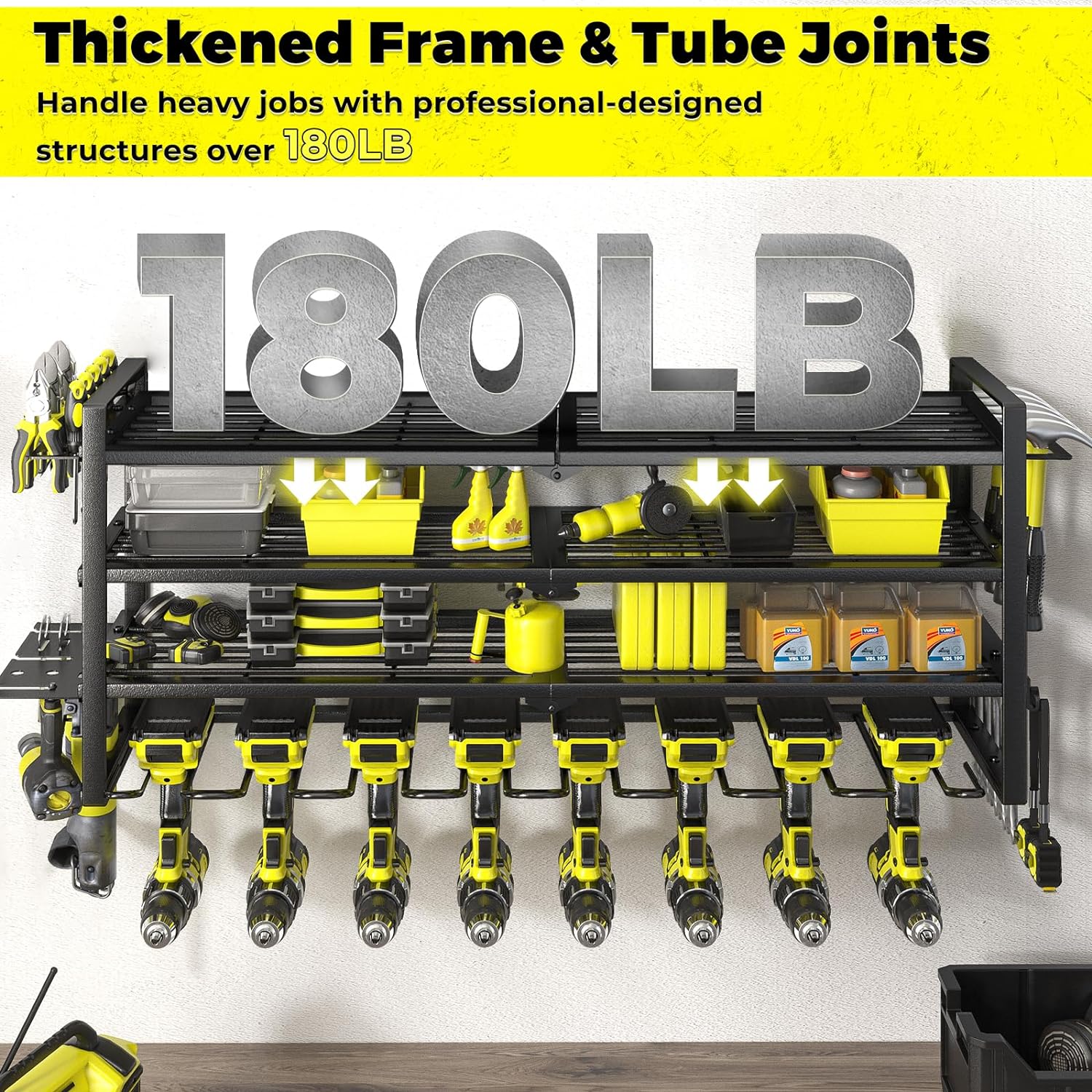 - Robust Construction: Designed for durability, the horizontal framework of the KAFAHOM wall-mounted drill holder is constructed with square iron tubes, providing a weight capacity of up to 180 lbs and enhancing its longevity. Trust in KAFAHOM for tools that can handle the toughest jobs.
