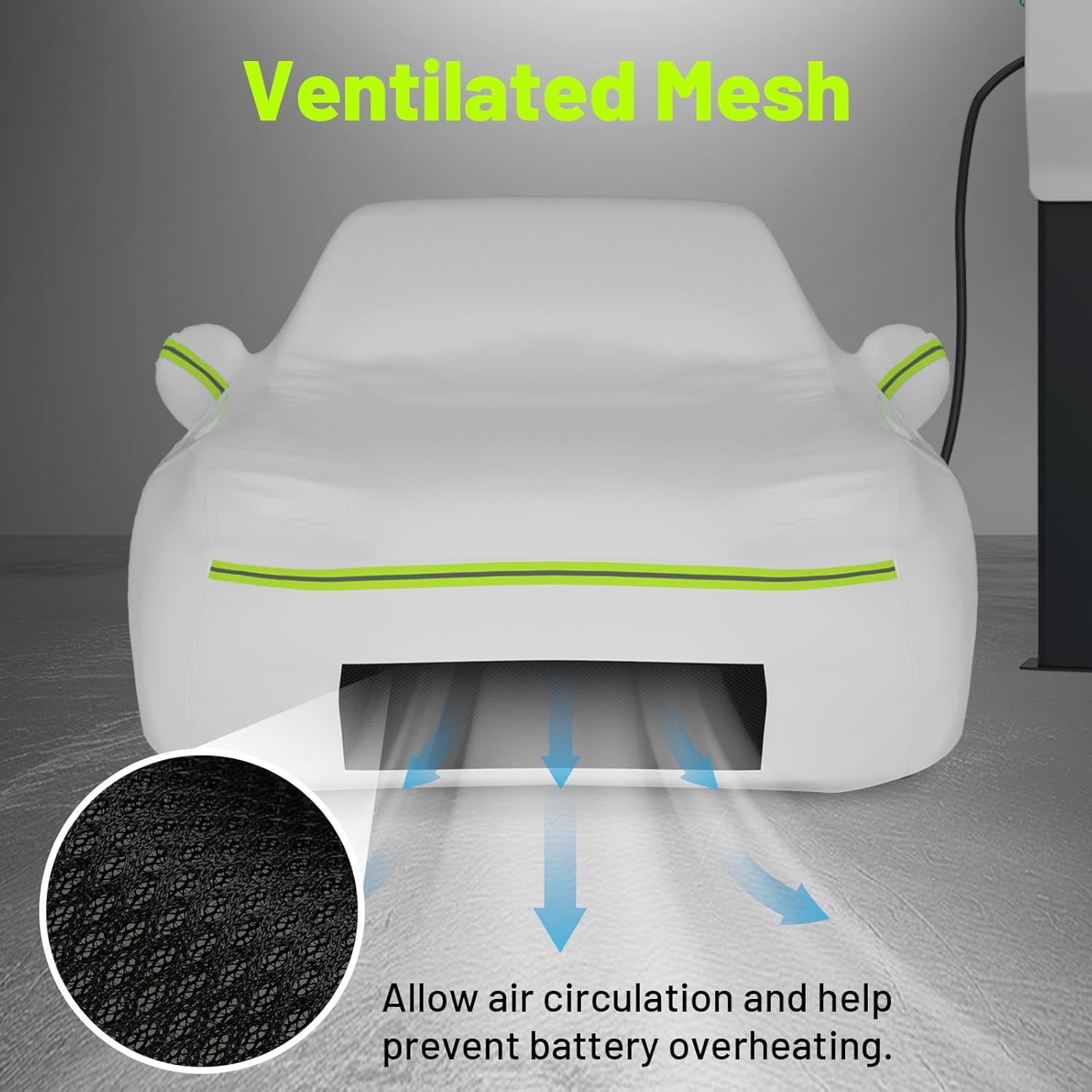- ăCustomized Design for Tesla Model 3ă- Featuring a charging port opening and ventilated mesh design. â A built-in zippered opening for the charging port allows your tesla to charge without removing the full car cover. ⥠The ventilated mesh guarantees effective air circulation and battery conditioning, safeguarding the Tesla battery in hot conditions and maintaining optimal battery performance during charging.
