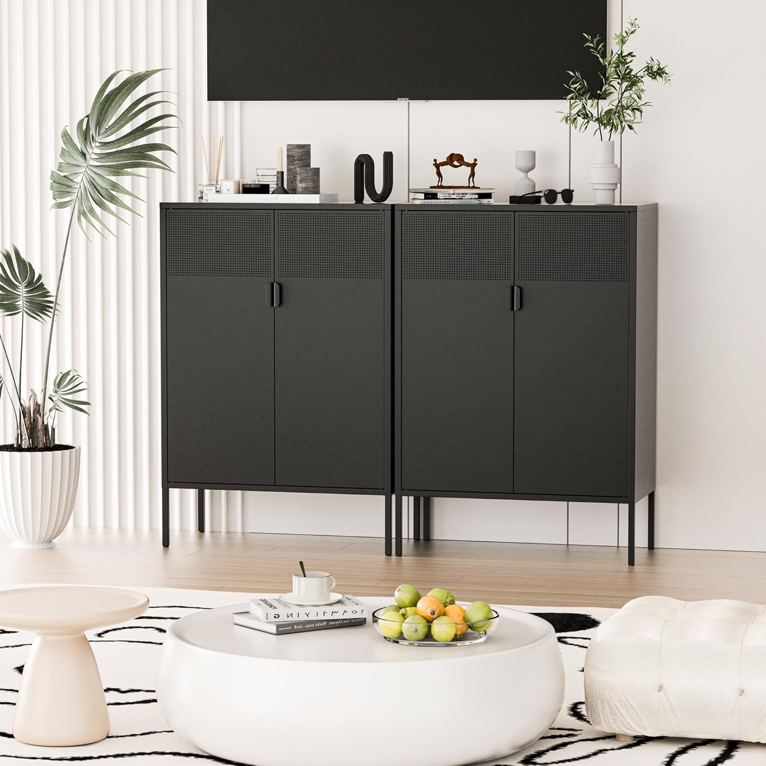 2 Mesh Door Metal Storage Cabinet with Adjustable Shelves, Multipurpose Black Storage Cabinet, 3-Tier Office Cabinet,Metal Storage Cabinet for Office Home,Hallway(Black, 47''H)