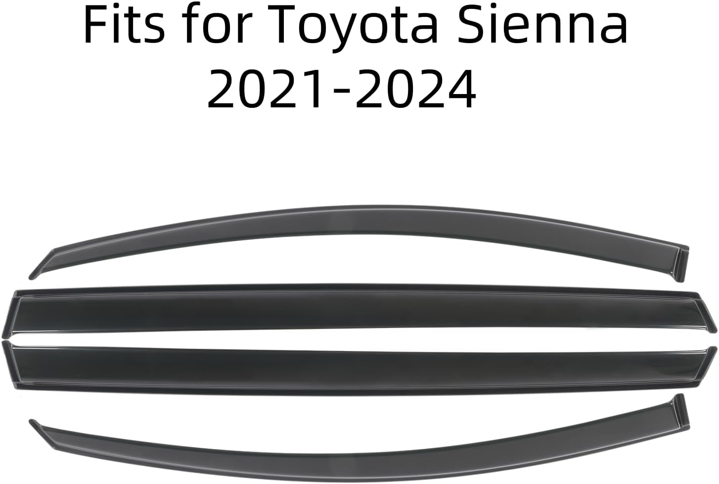 - Customzed Fit: CHYKORLA window rain guards CUSTOM FIT Only compatible with Toyota Sienna 2021-2024. Please check your vehicle’s make, model and year with fitment details to ensure accurate fitment as all visors are vehicle specific