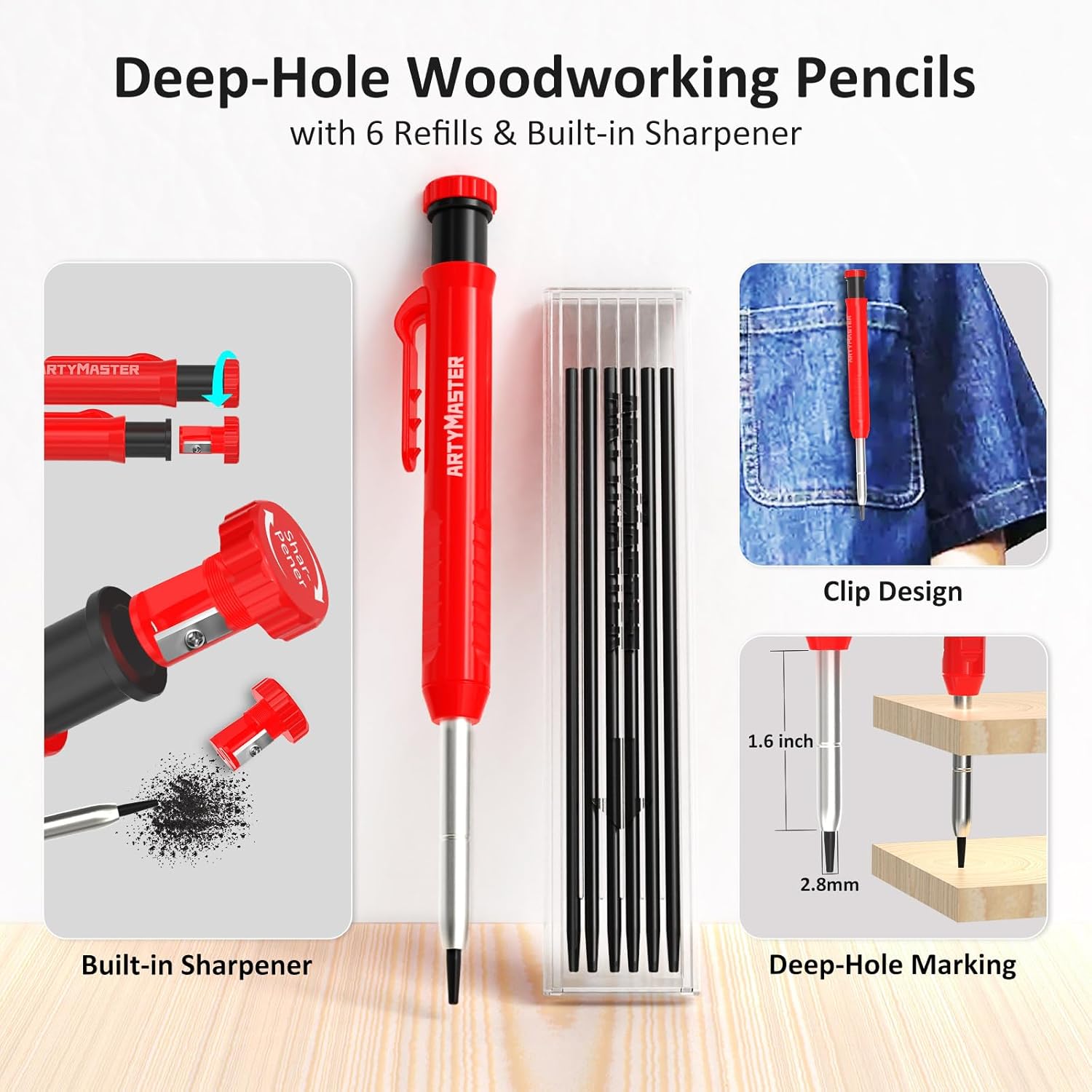 - Professional Woodworking Tools and Accessories: The imperial measuring ruler comes with a professional carpenter pencil (built-in pencil sharpener) and 6 refills (2.8mm break-resistant) and an Allen wrench. Whether in workshops, construction sites or at homes, it can provide the necessary measuring and marking with comprehensive user experience.
