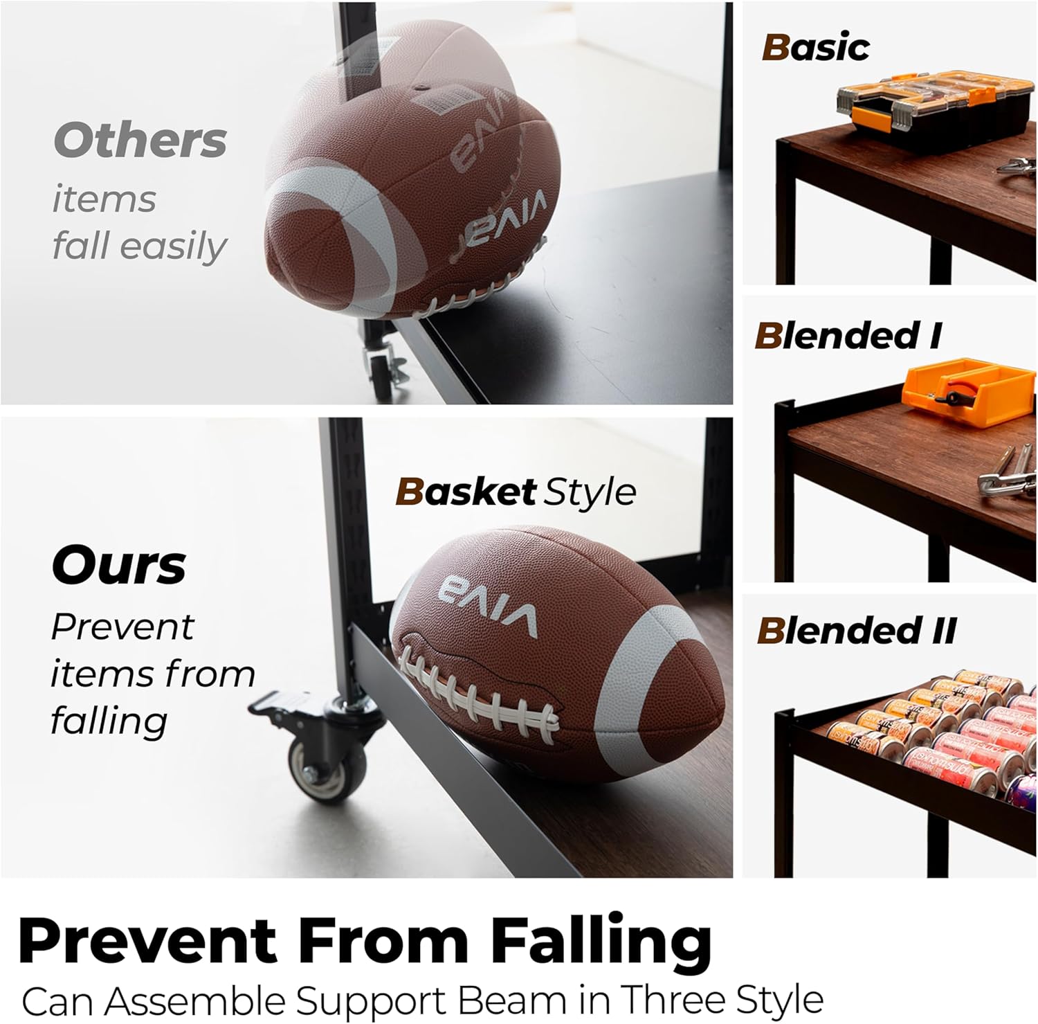 HOMEDANT House 5-Tier Metal Rolling Cart Shelf Rack Casters Heavy Duty Laminated Wheel Shelving Unit Adjustable Utility Storage Shelves Organizer Shelf Kitchen Garage 36.2" W x 16.5" D x 69.5" H 3Pack