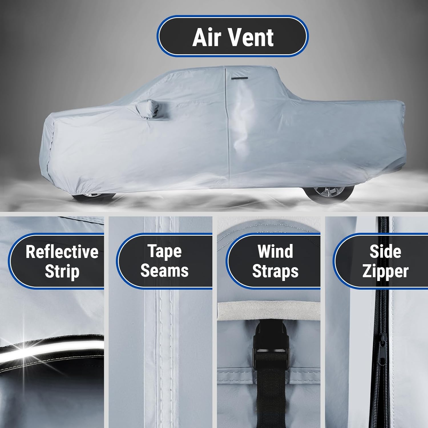 - SECURE YOUR VEHICLE WITH CONFIDENCE: Keep your car safe in all conditions. This cover comes with three heavy-duty straps that securely hold it in place during high winds, preventing it from shifting or flying off. You can trust it to protect your vehicle and give you peace of mind, even in tough weather.