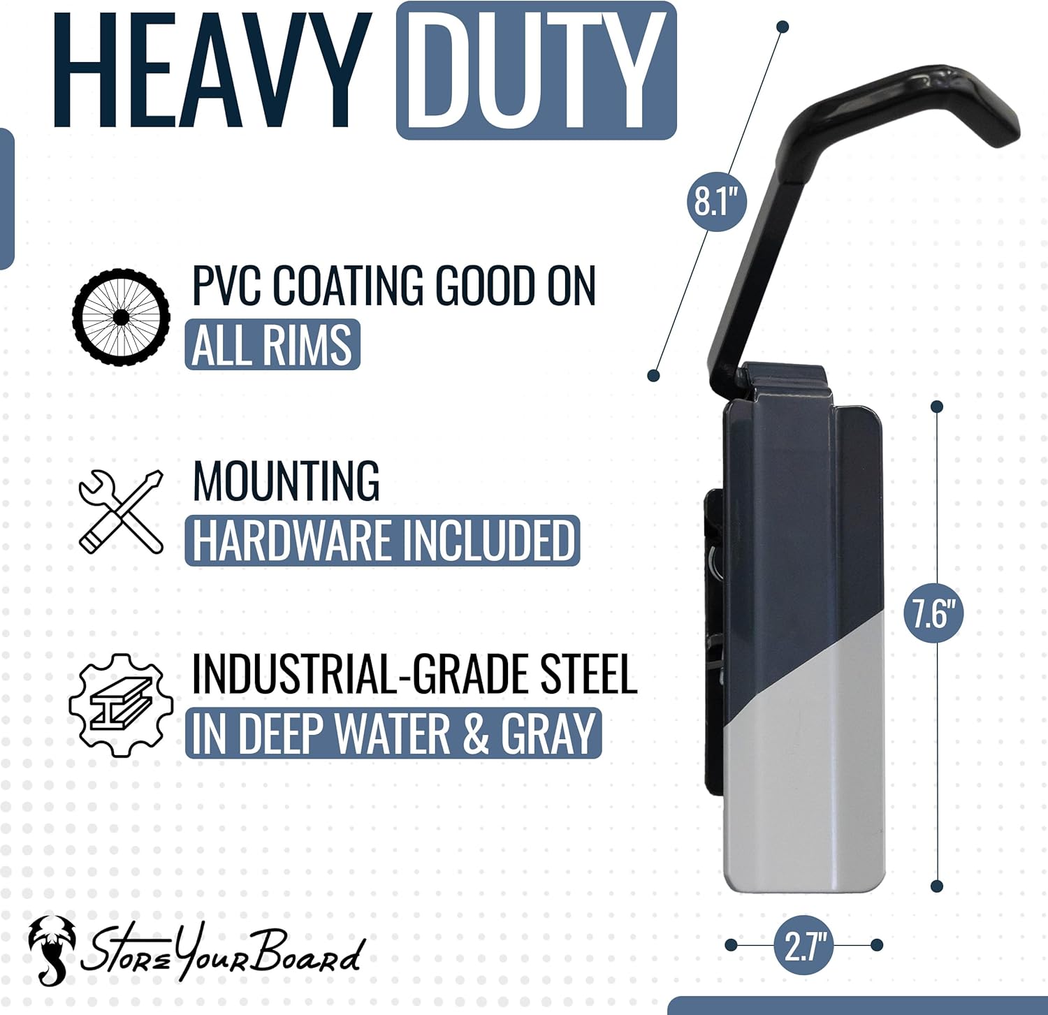 - HEAVY-DUTY PERFORMANCE – Crafted from powder-coated steel and built to last, each bicycle hanger holds up to 50 lbs of bike weight. The rubber-coated bike hook is gentle on rims, including carbon, and helps prevent scratches or damage. No plastic parts, just solid, welded construction built for long-term indoor bike storage.