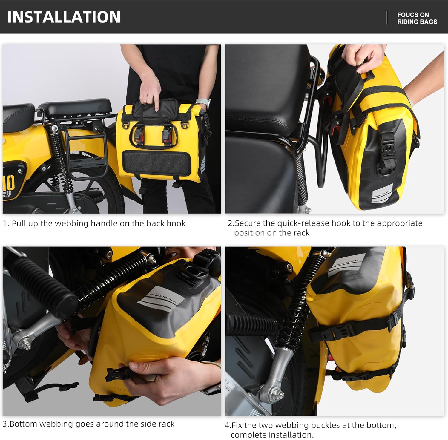 - Good waterproof performance: The motorcycle side bags can detachable laptop compartment bag, Hot-pressed adhesive strip is used for the inside of the package, and the waterproof performance is more outstanding. 6000MM waterproof lining, easy to withstand rain