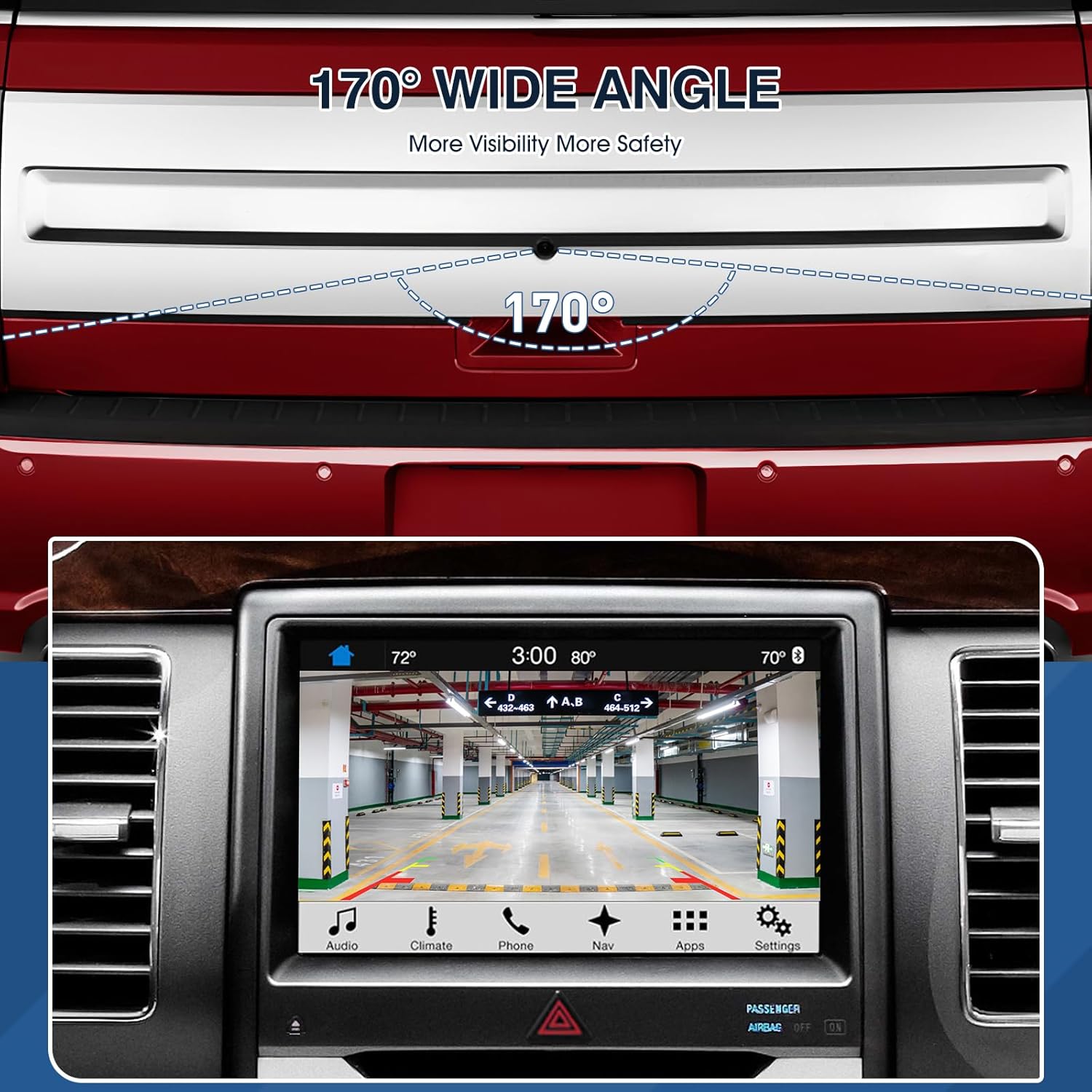 - ăClear Day and NightăThis Reversing Parking Assist Camera made of high quality material and lens, support 170° wide vision and provides the driver with a clear and accurate color reproduction whenever in the day or night.