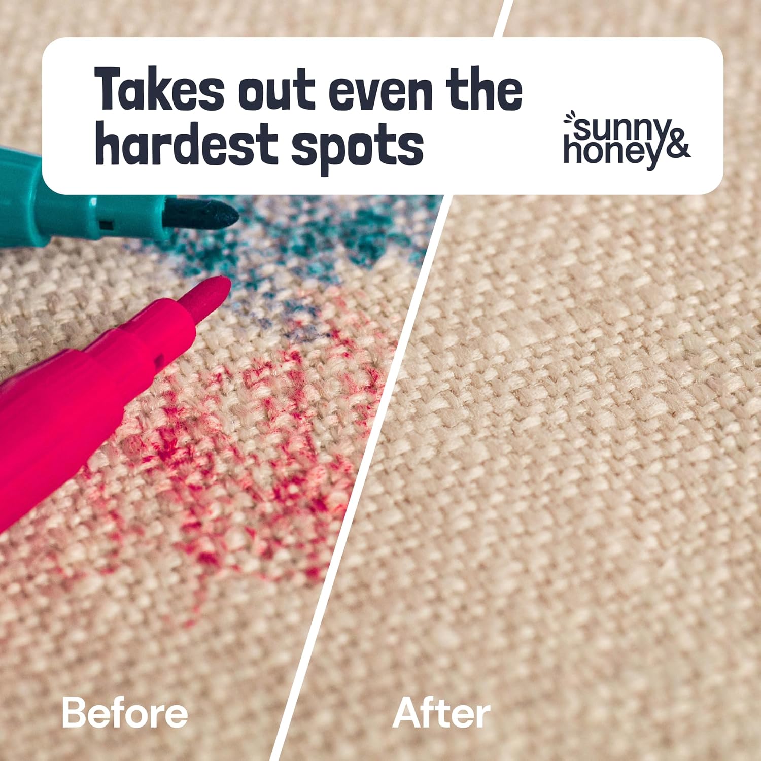 - Meet Your Clean Buddy: The Sunny & Honey Fabric & Carpet Cleaner Spray is your trusty partner for tackling tough stains and bad surface smells, perfect for a spotless, fresh home. Whether it's a couch stain or a laundry mishap, this upholstery cleaner handles it all