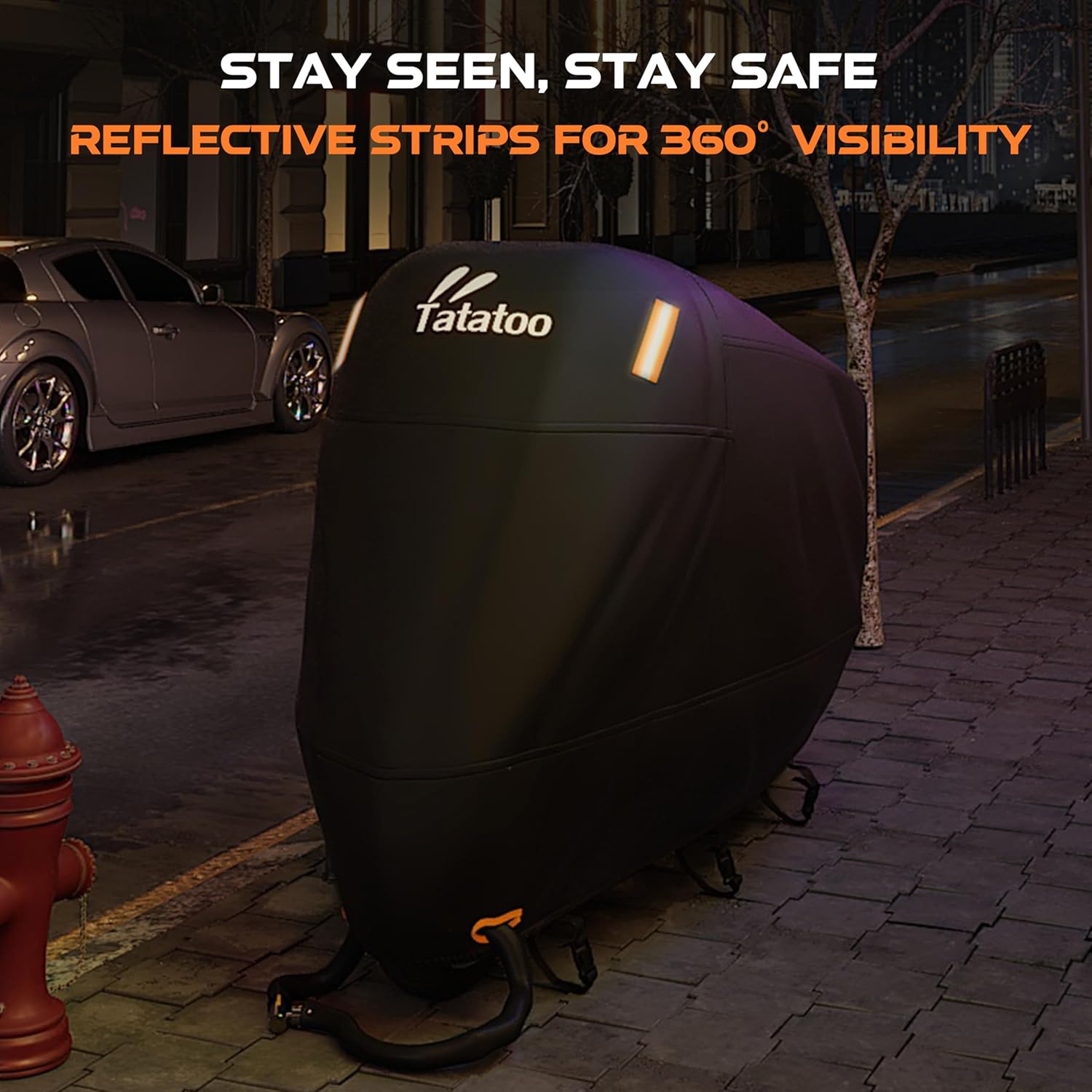 - ăWindproof & Secure FităTATATOO has uniquely designed windproof buckles at three strategic points (front, middle, and rear) along the bottom hem of the cover to resist strong winds. This ensures the cover fits securely over your motorcycle, preventing it from blowing away, even on windy days. Ideal for cruisers, dirt bikes, or mopeds, this innovative design gives you confidence when leaving your bike outdoors.