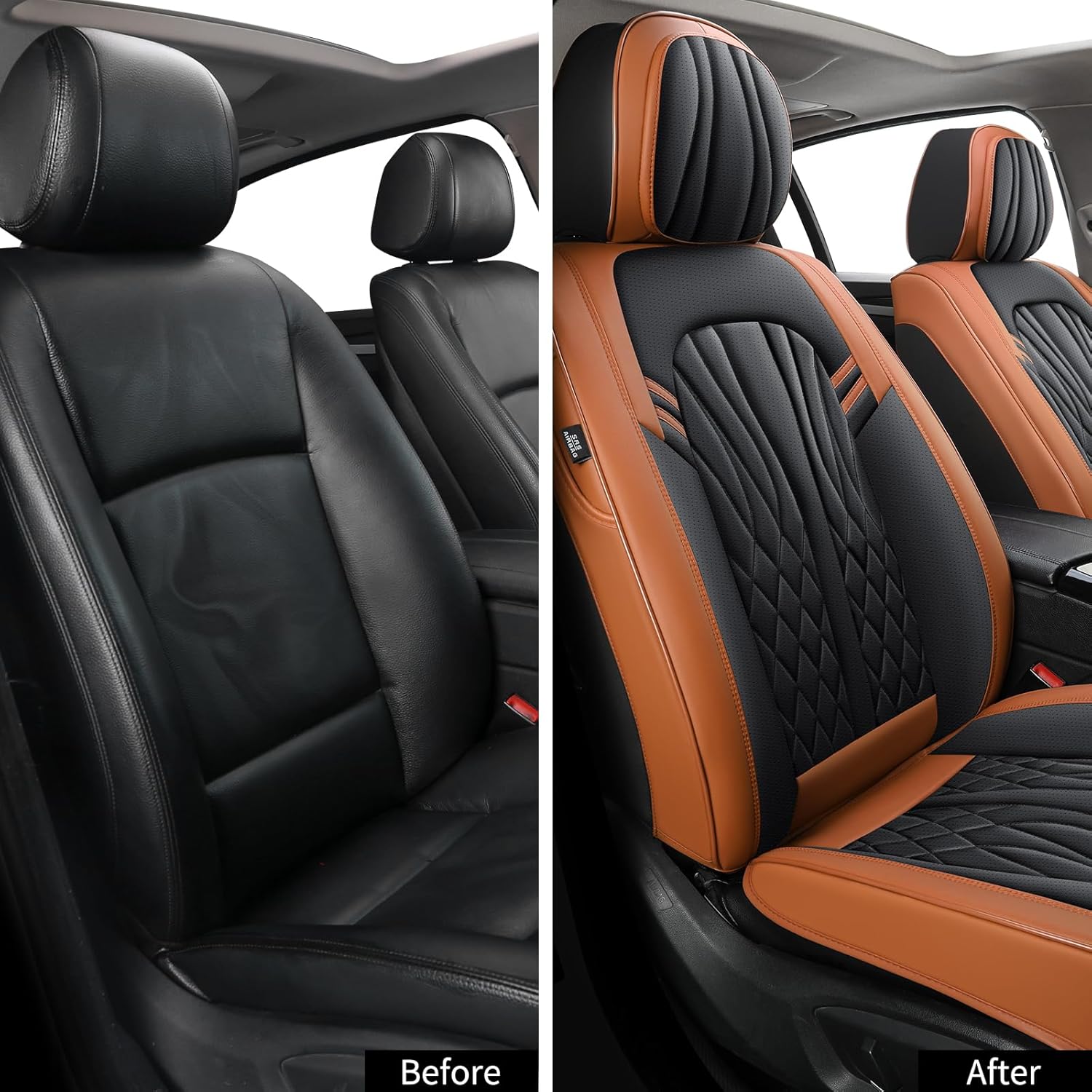 Car Seat Covers Front Seats, Car Seat Protector Waterproof, Car Seat Cushion Nappa Leather, Driver Seat Cover Brown Carseat Cover Universal Fit for Most Cars Brown&Black