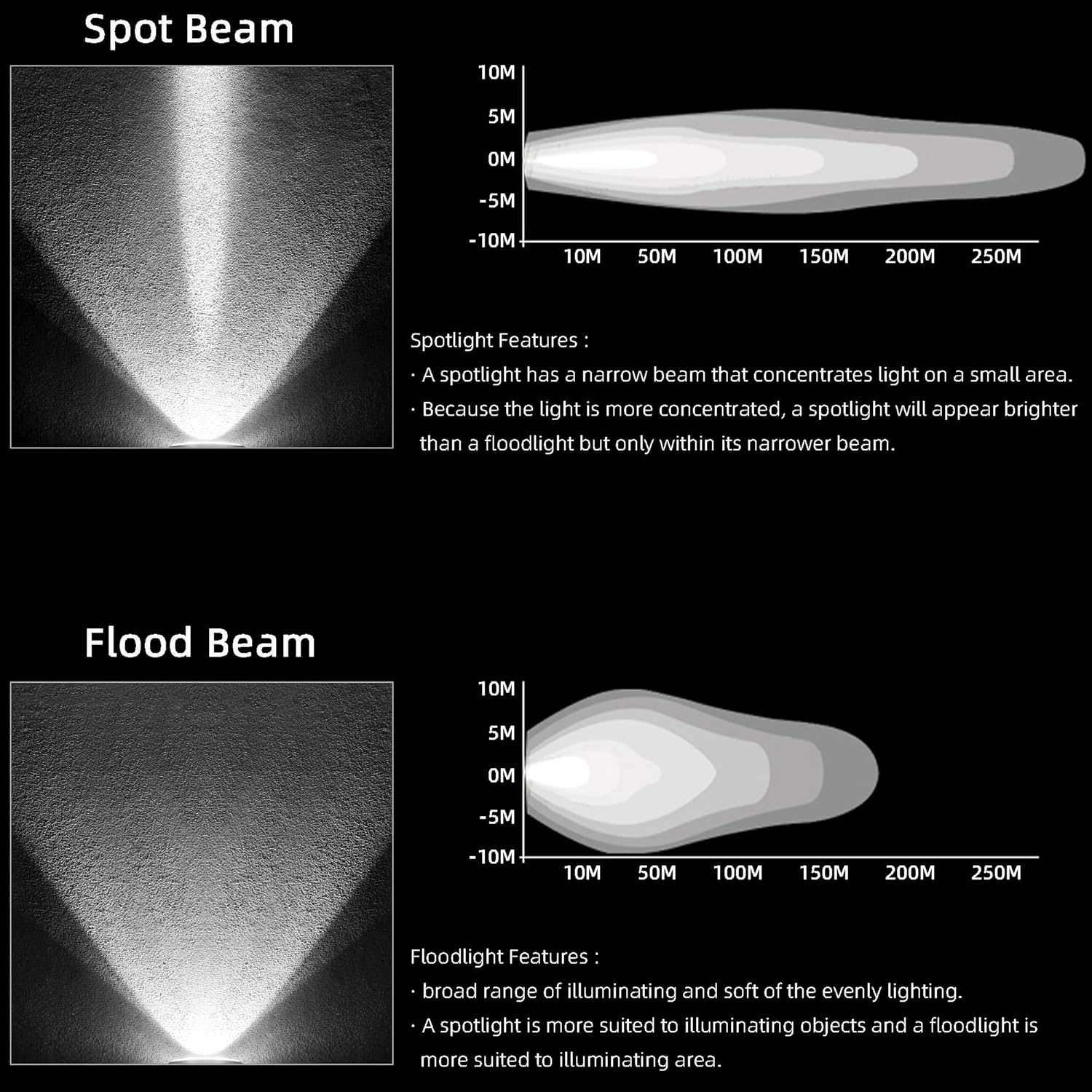 - ăFLOOD BEAM FEATURESă Flood beam illuminates to broad viewing area, allowing you to see the left and right clearly.