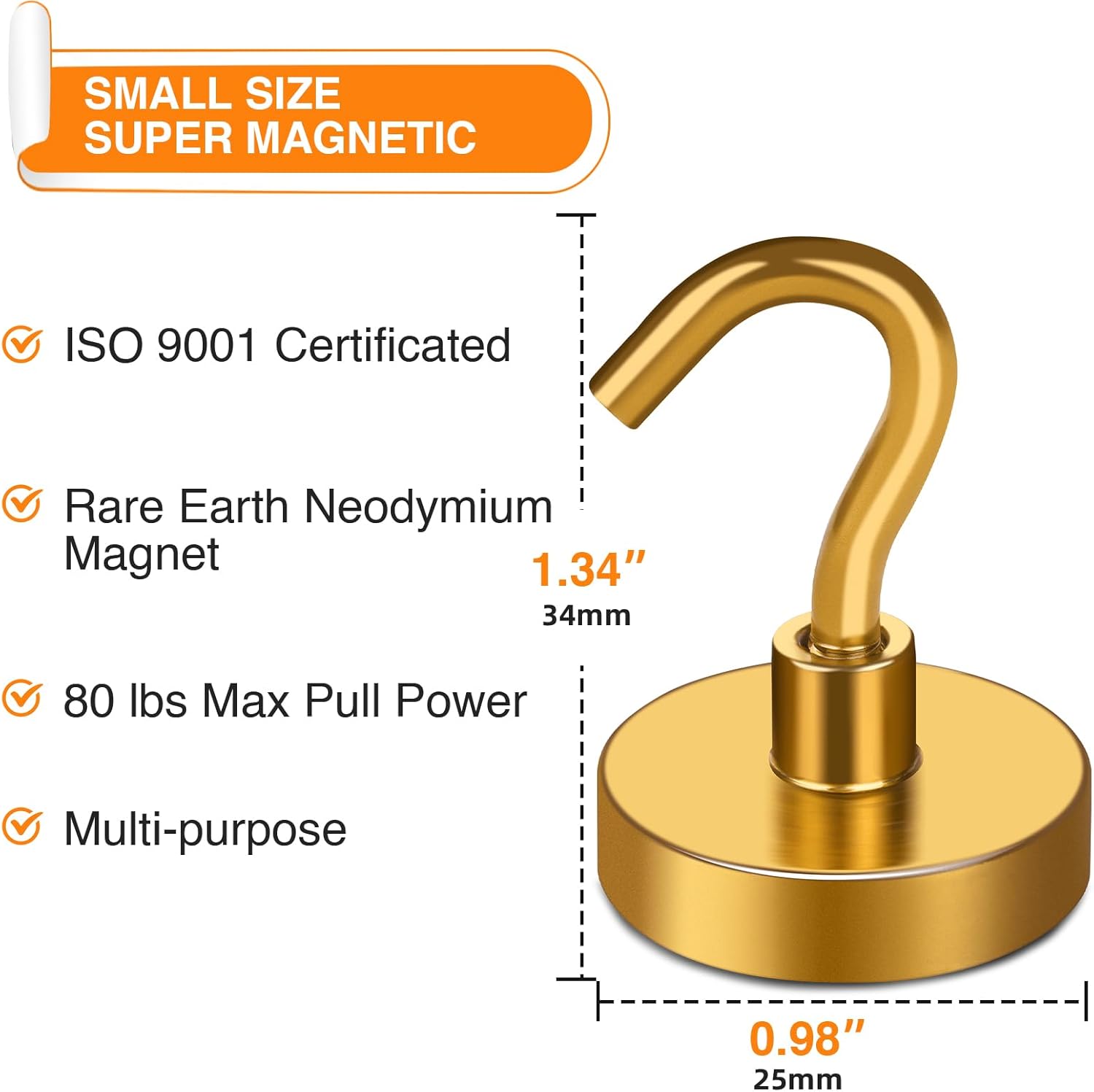 - 【Excellent Layer Coating】- Our metal magnetic hooks come with an excellent triple-layer coating of Ni+Cu+Ni, which greatly reinforces their corrosion resistance. This coating is the best available, providing a shiny and rust-resistant surface that helps prevent chipping or cracking. The coated steel cup also provides protection for the heavy duty magnetic refrigerator hooks. With this excellent layer coating, you can trust that our magnetic hanging hooks are safe to use and will last a long time.