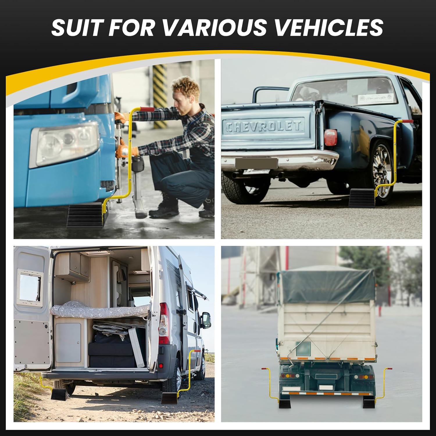 - 【Easy to Use and Protective】Compared with traditional wheel chocks, wheel chocks with handles allow you to move and fix by the handles, and the handle height reaches 30 inches, which can save your physical strength and keep it away from the bottom of the car and tires, Reduce risk of injury