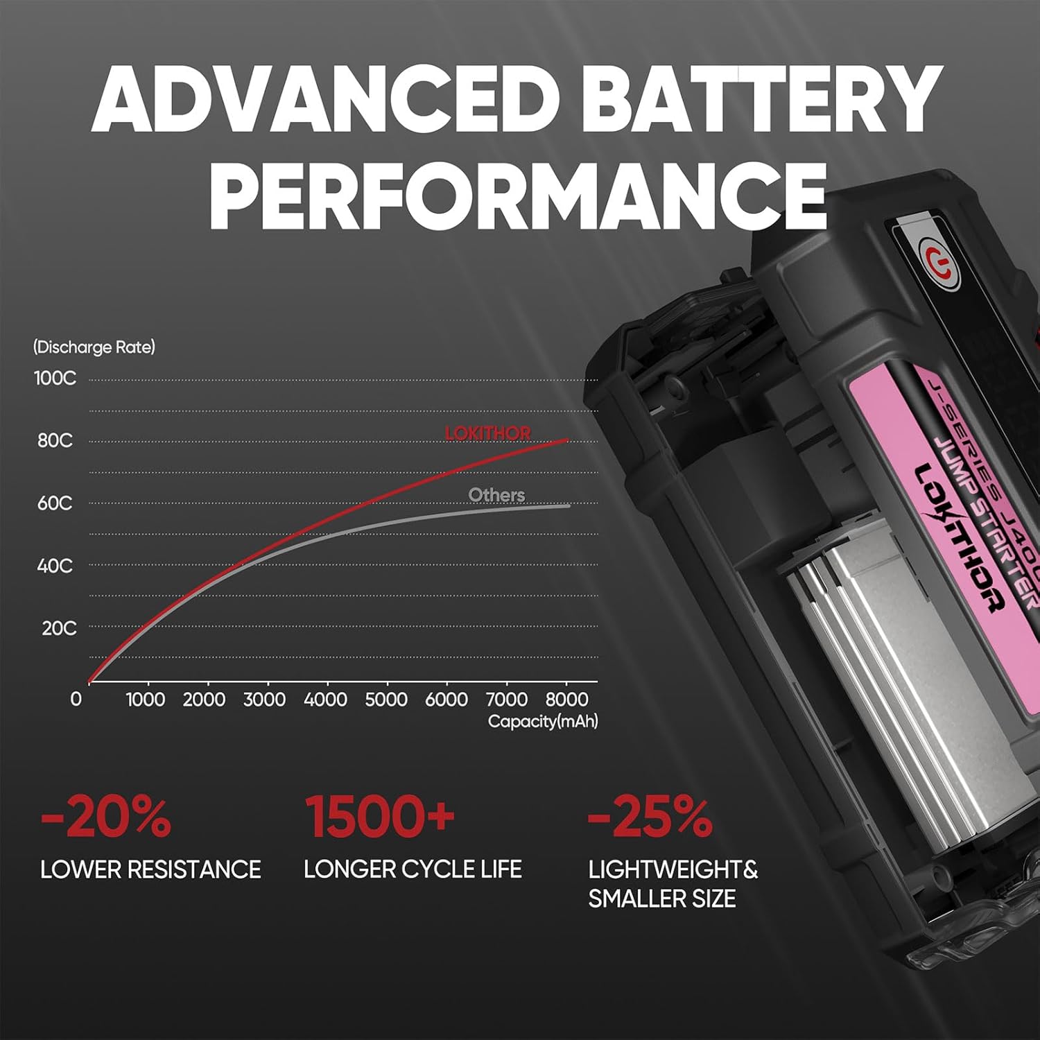 - Extreme Safe - Designed with an integrated battery management system and smart self-identifying clip, the LOKITHOR emergency starter is safe and fully insulated. 10 protection types, including Spark-Proof Protection, Reverse-Charge Protection, Over-Charge Protection, Over-Current Protection, Short-Circuit Protection, Reverse-Polarity Protection, Low-Temp Protection, High-Temp Protection, Over-Voltage Protection , Over-Load Protection, securely connects to any 12-volt vehicle.