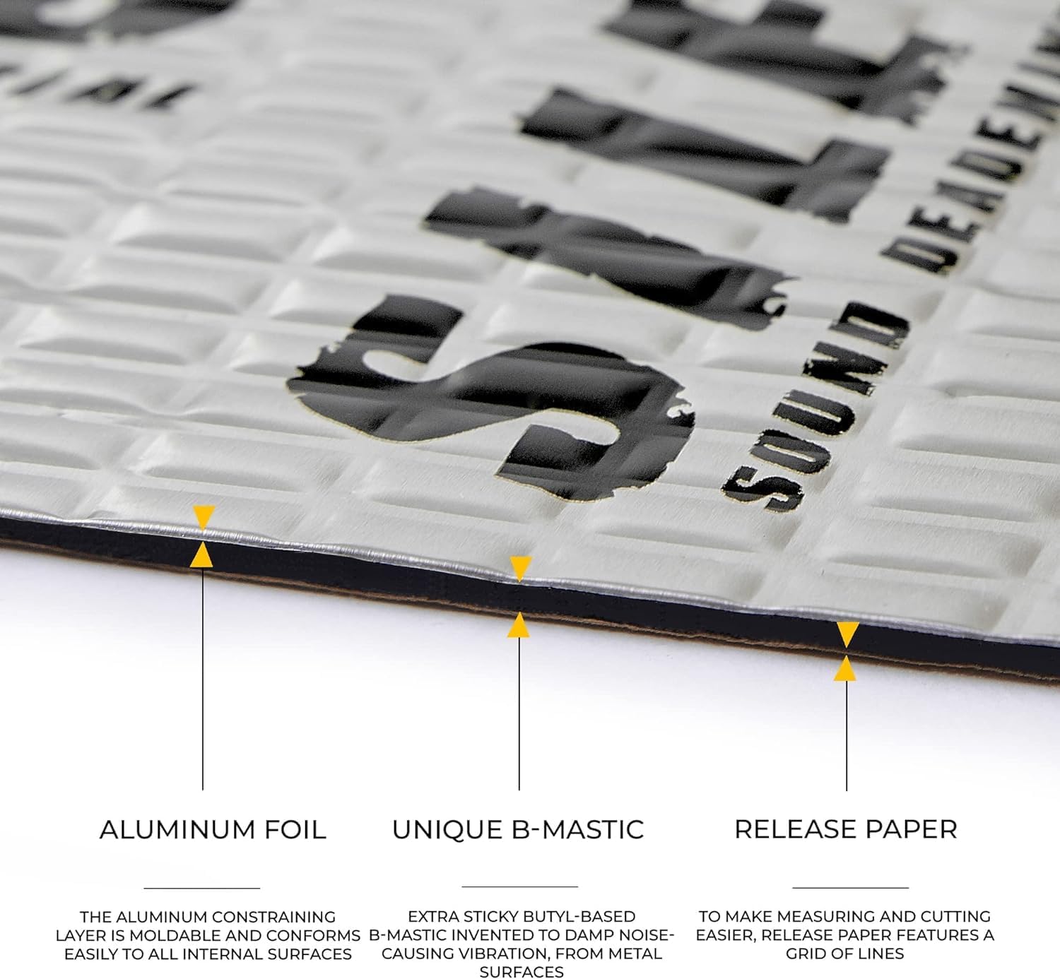 Siless 80 mil (2mm) Car Sound Deadening mat - Butyl Automotive Sound Deadener - Noise Insulation and Vibration Dampening Material 5 sqft (0.46 sqm)