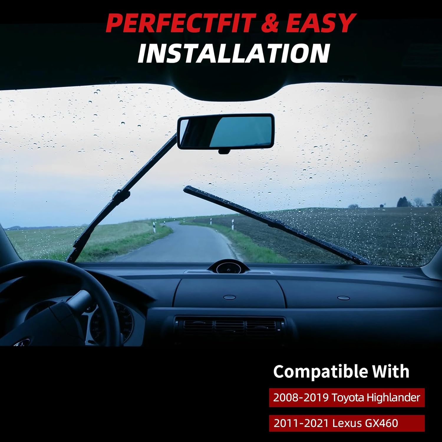 - [26"+20"+12" Perfect Fitment]: Replacement for Toyota Highlander 2008-2019, Lexus GX460 2011-2021. Our windshield wiper blades are engineered to provide a perfect fit for vehicle models, ensuring optimal performance and coverage
