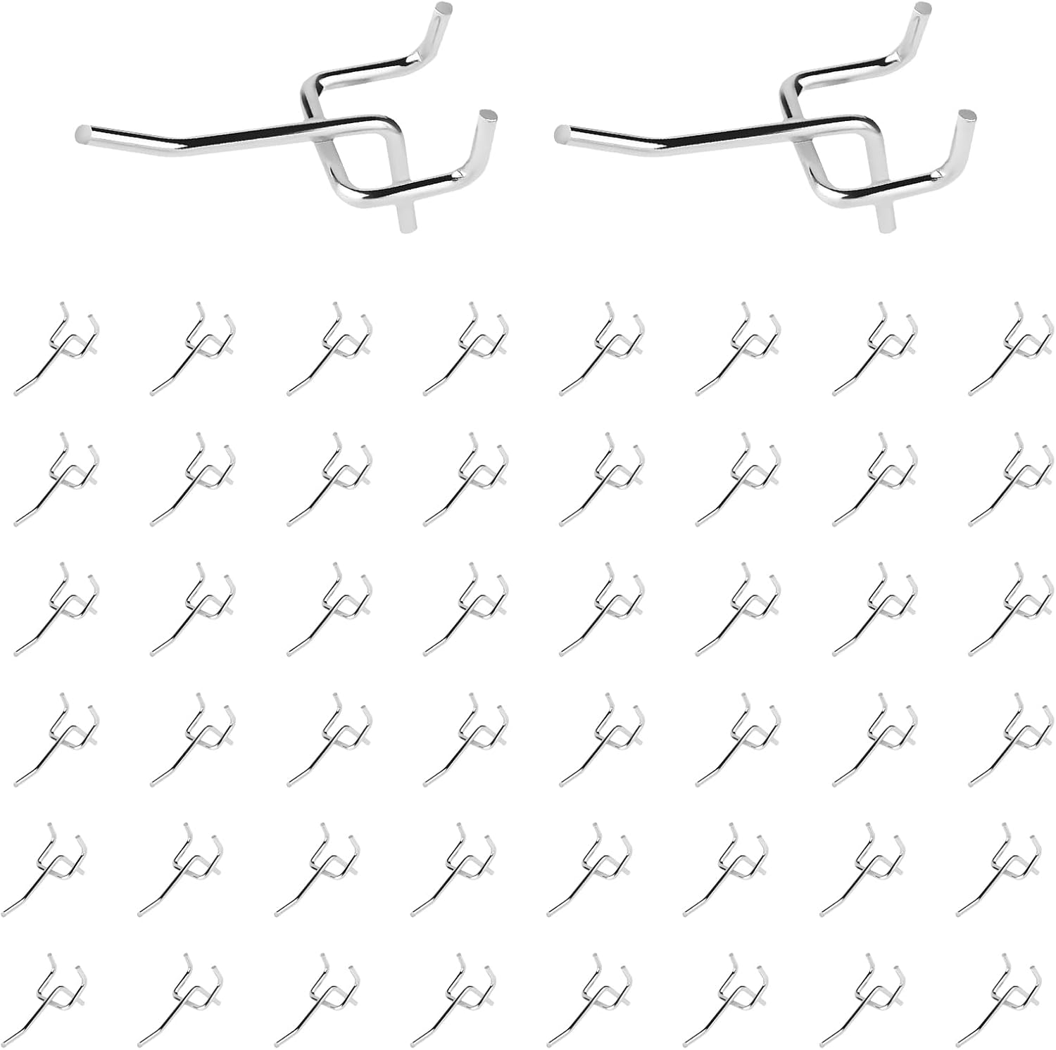50Pcs 2"/5CM Pegboard Hooks Assortment Set, Metal Peg Board Hooks with 2.5mm Hole Pitch 4mm Wire Diameter Slatwall Hanging Hook for Garage Organization Wall Hanging (Silver)