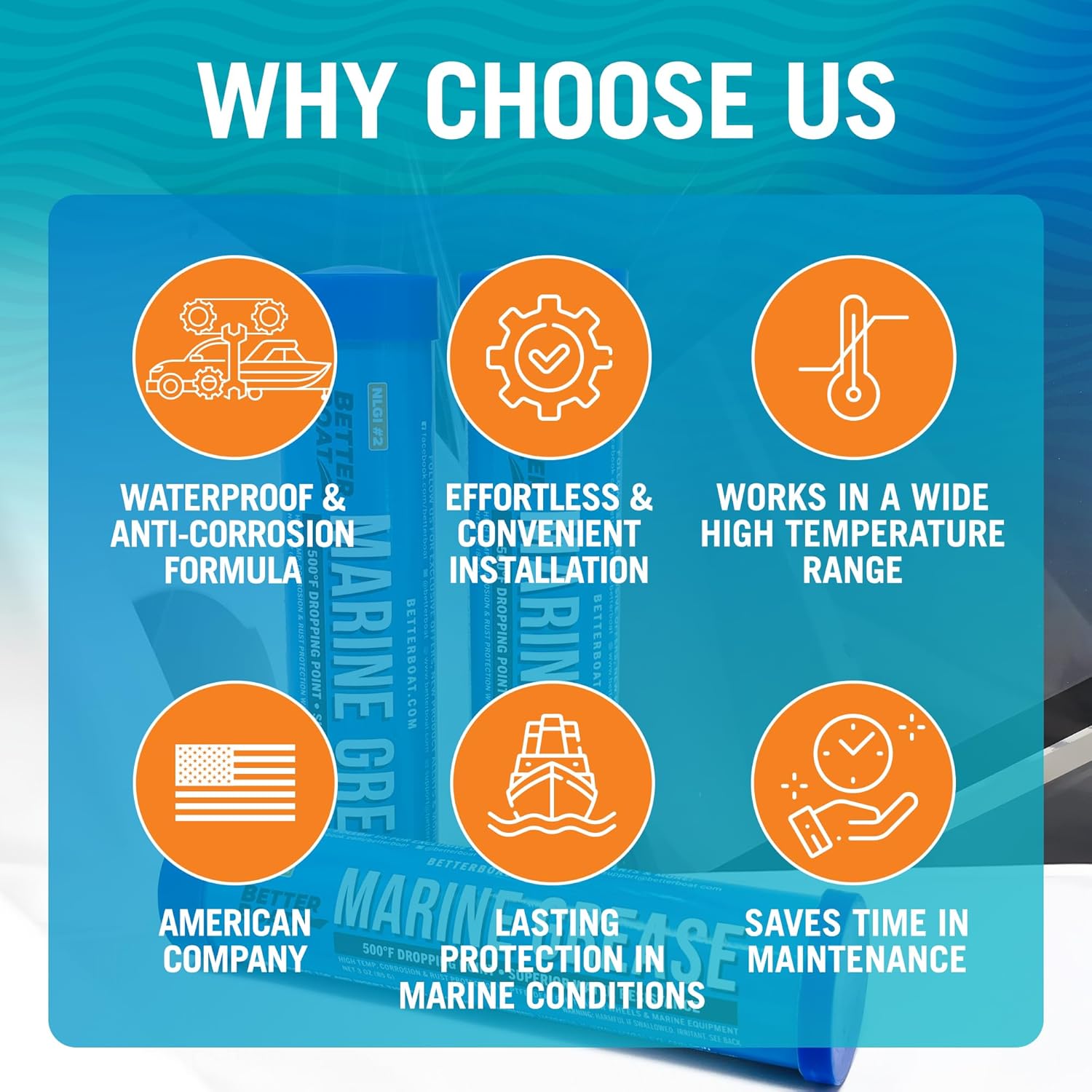 - WHY BETTER BOAT: We are a family owned American business committed to making premium boating accessories. We stand behind your satisfaction and our marine grade boat accessories including our NLGI 2 grease cartridges for grease gun solutions.