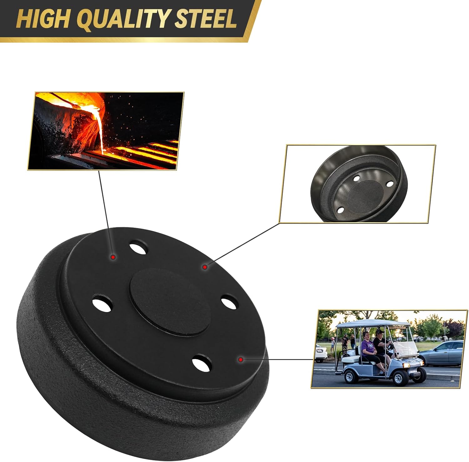 - 【Warm Tip】The brake drum in this kit does NOT have the center hole, it will NOT fit older Club Car golf cart. This club car ds brake drum replace oem #1017911-01