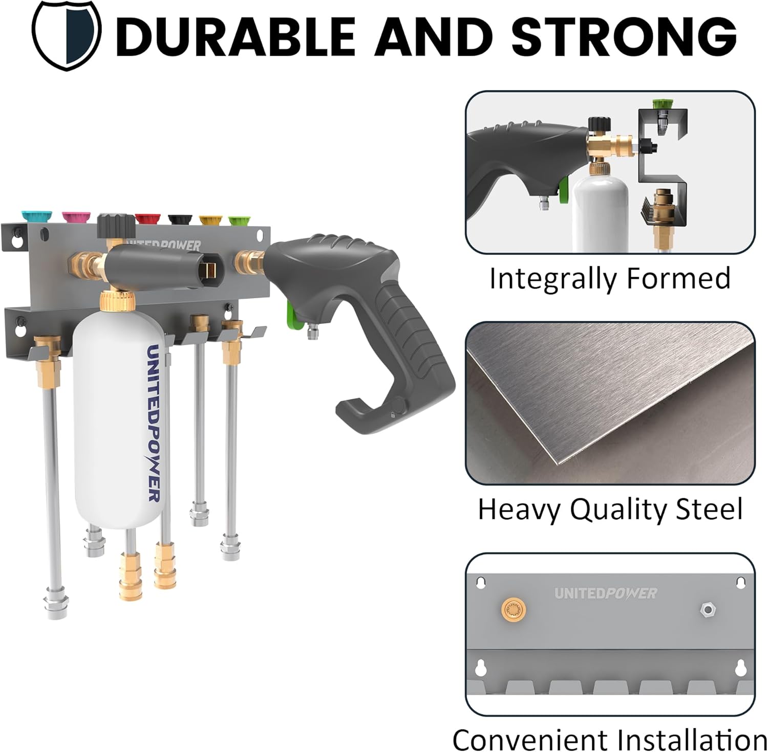 UNITEDPOWER Pressure Washer Gun Holder,Wall Mount Foam Cannon Holder,Tool Storage Rack for Pressure Washer Wand/Nozzle Tips, Car Wash Accessories Organizer, Silver