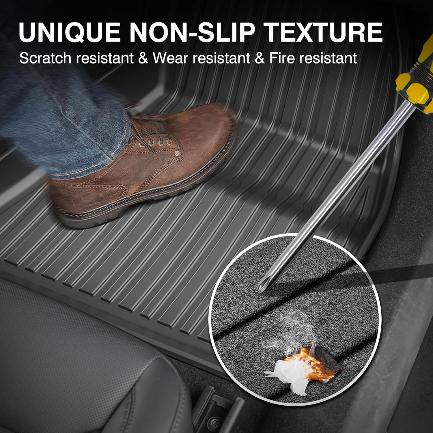- Upgraded TPE Material: Crafted from superior TPE, these floor liners offer unparalleled flexibility, soft touch, and durability, and are heavy-duty, odorless, and easy to reshape.