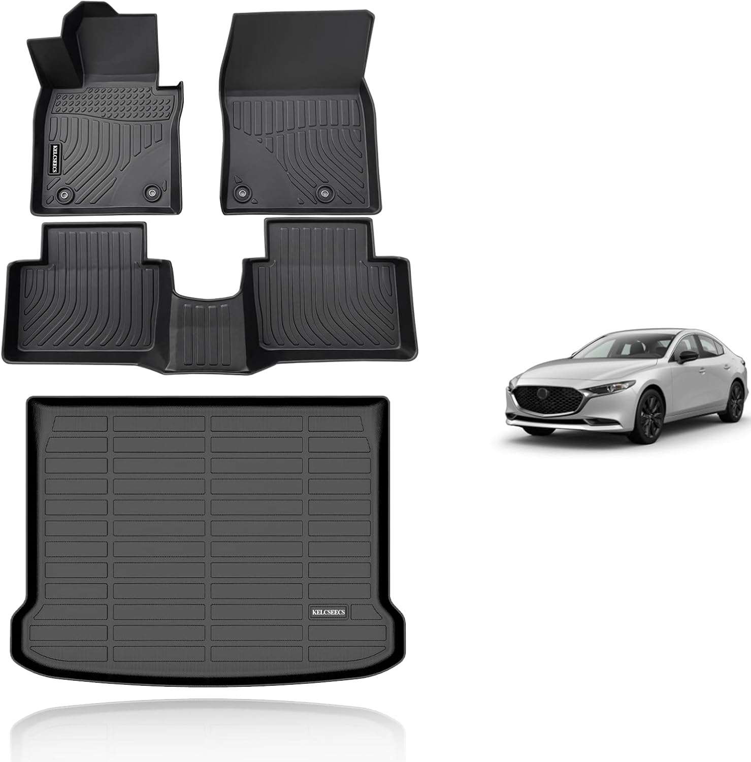 KELCSEECS® Floor Mats & Cargo Liner Custom for Mazda 3 2025 2024 2023 2022 2021 2020 2019(Only Fits Hatchback Models)All Weather Protection TPE Floor Liners Front & Rear Row Full Set Accessories Black