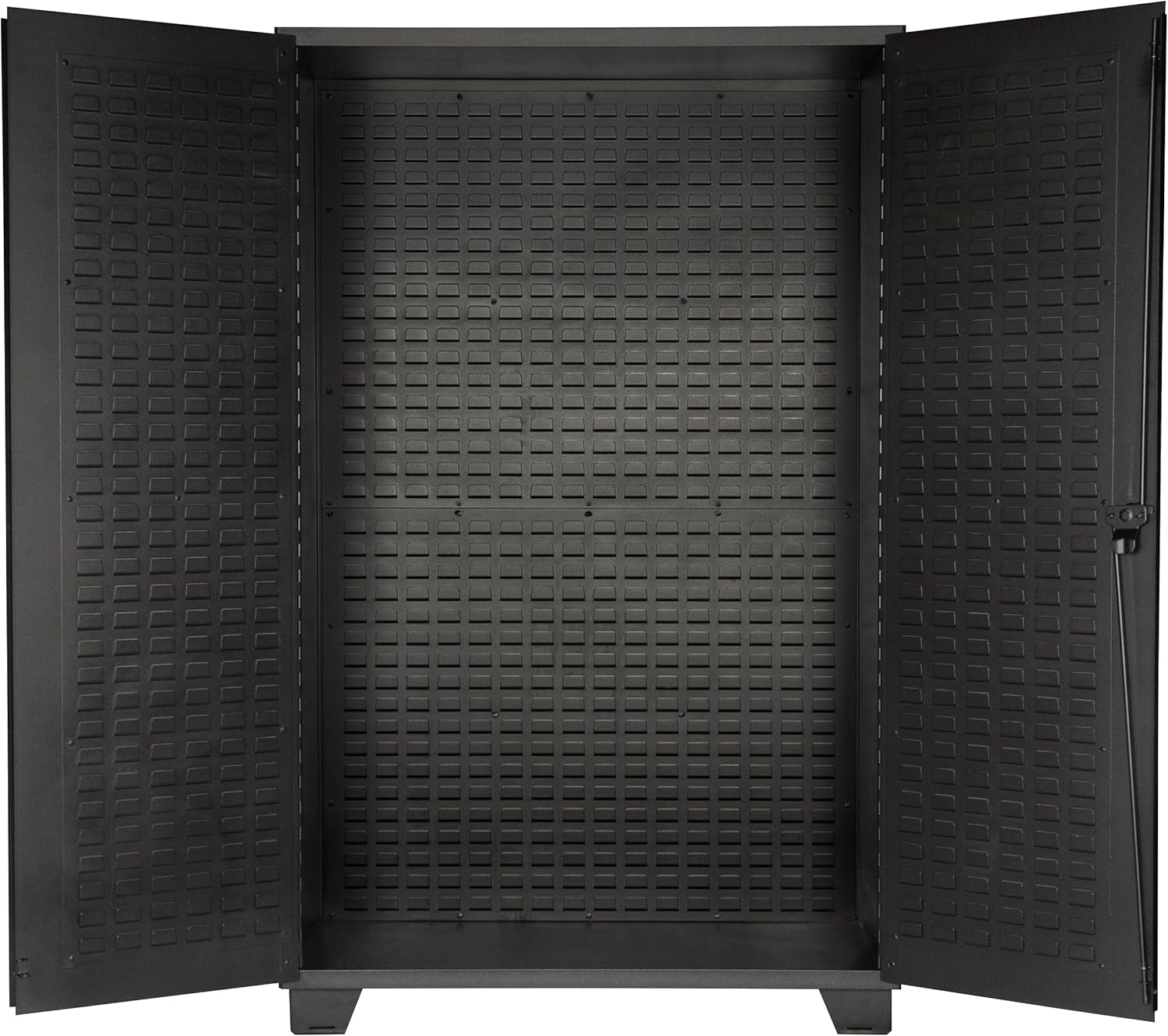 - Intentional Design; Doors with pad-lockable lever handle, 3-point locking system, doors open full 180° (padlock not included). 4" high legs allow for moving of empty unit with forklift truck.