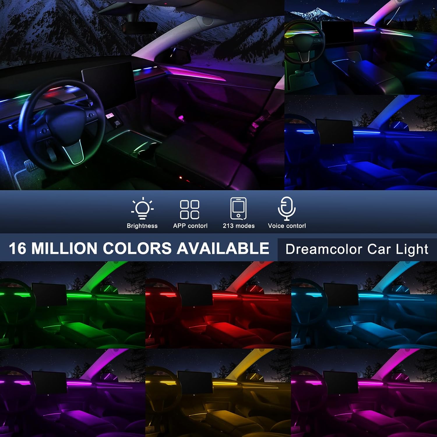 Dream+Color Acrylic Interior Car LED Strip Light with Motion Sensor Switch, 55.1 inches Neon LED Strip Light, RGB Colors Ambient Lighting Kits