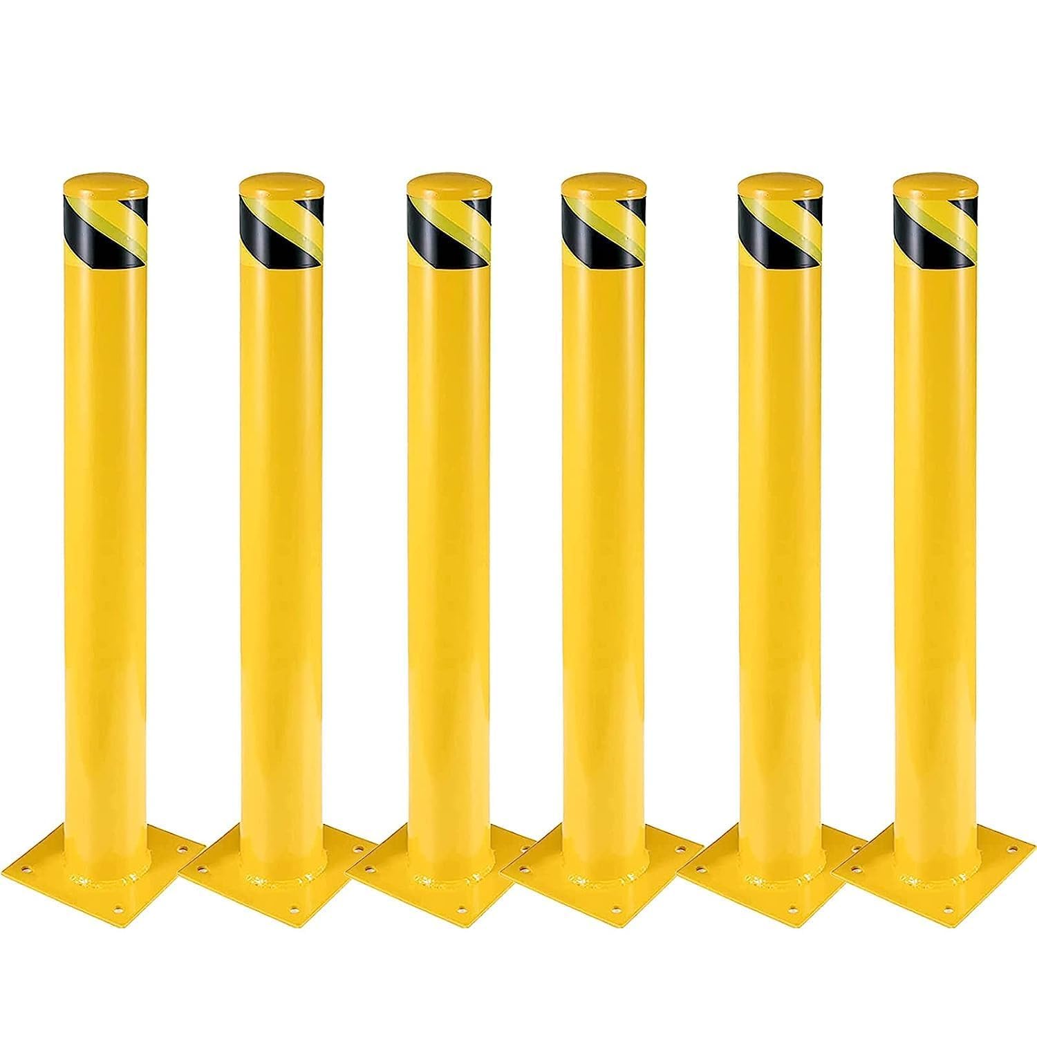 Safety Bollard 6 Packs,36 Inch High Heavy-Duty Yellow Safety Bollard Steel Posts,4.5 Inch Diameter,Safety Bollard with 16 Anchor Bolts - Perfect for Traffic Control, Driveway Barriers,Parking Poles