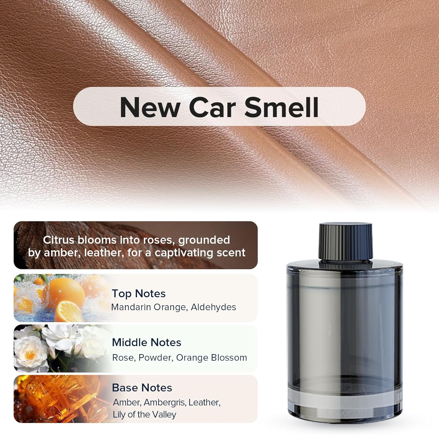 - 【New Car Smell】Citrus blooms into roses, grounded by amber, leather, for a captivating scent