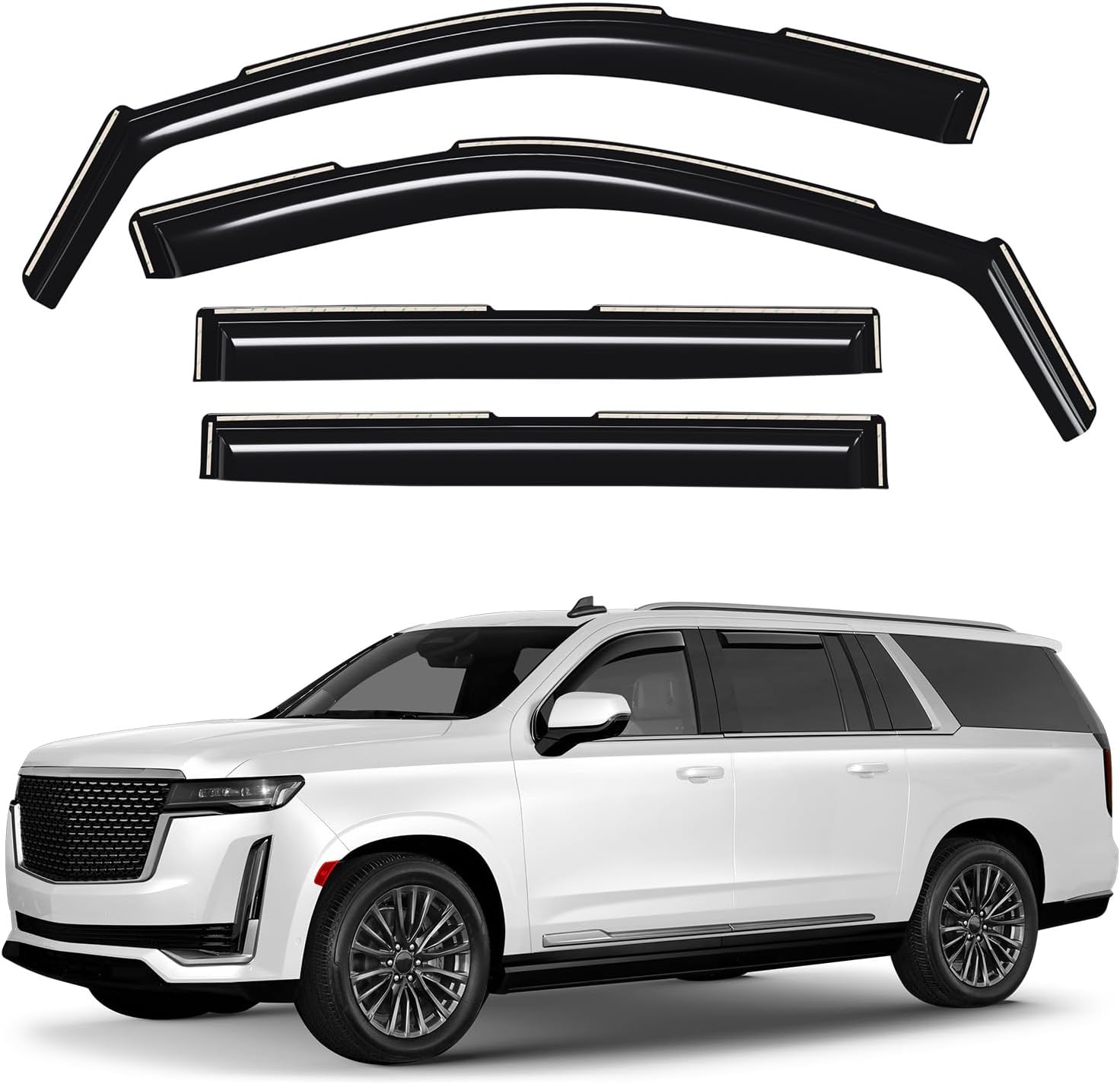 Window Deflectors Smoke Tinted In-Channel Side Window Vent Visor Deflectors Rain Guards Compatible with Escalade ESV 2021-2025 - 4pcs. GW0608