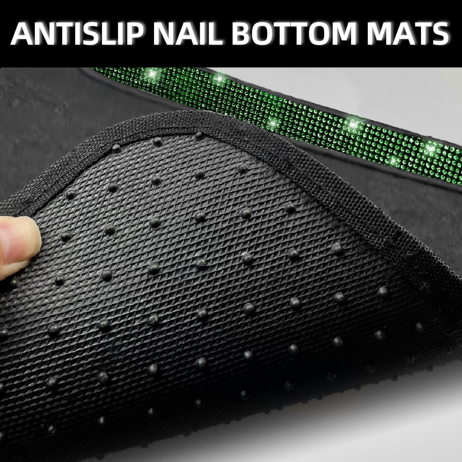 NBTEPEM Bling Car Floor Mats Full Set, Universal Fit Most Cars,SUV, Trucks, 4 pcs Sparkle Glitter Diamond Carpet for Women Girls with Anti-Slip Pad (Green Diamond)