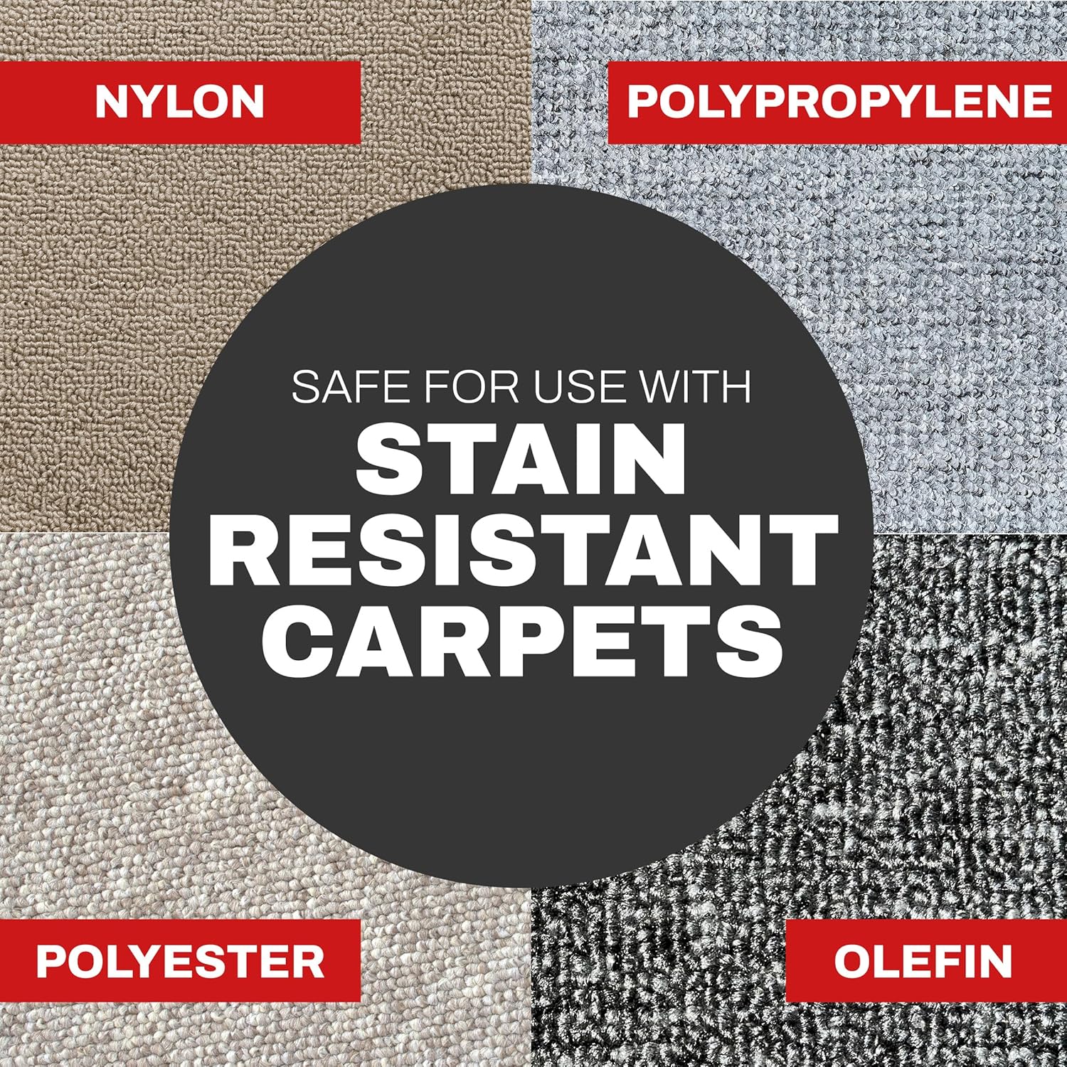 - Carpet stain remover is safe for use on stain-resistant carpet such as nylon, polypropylene, polyester and olefin