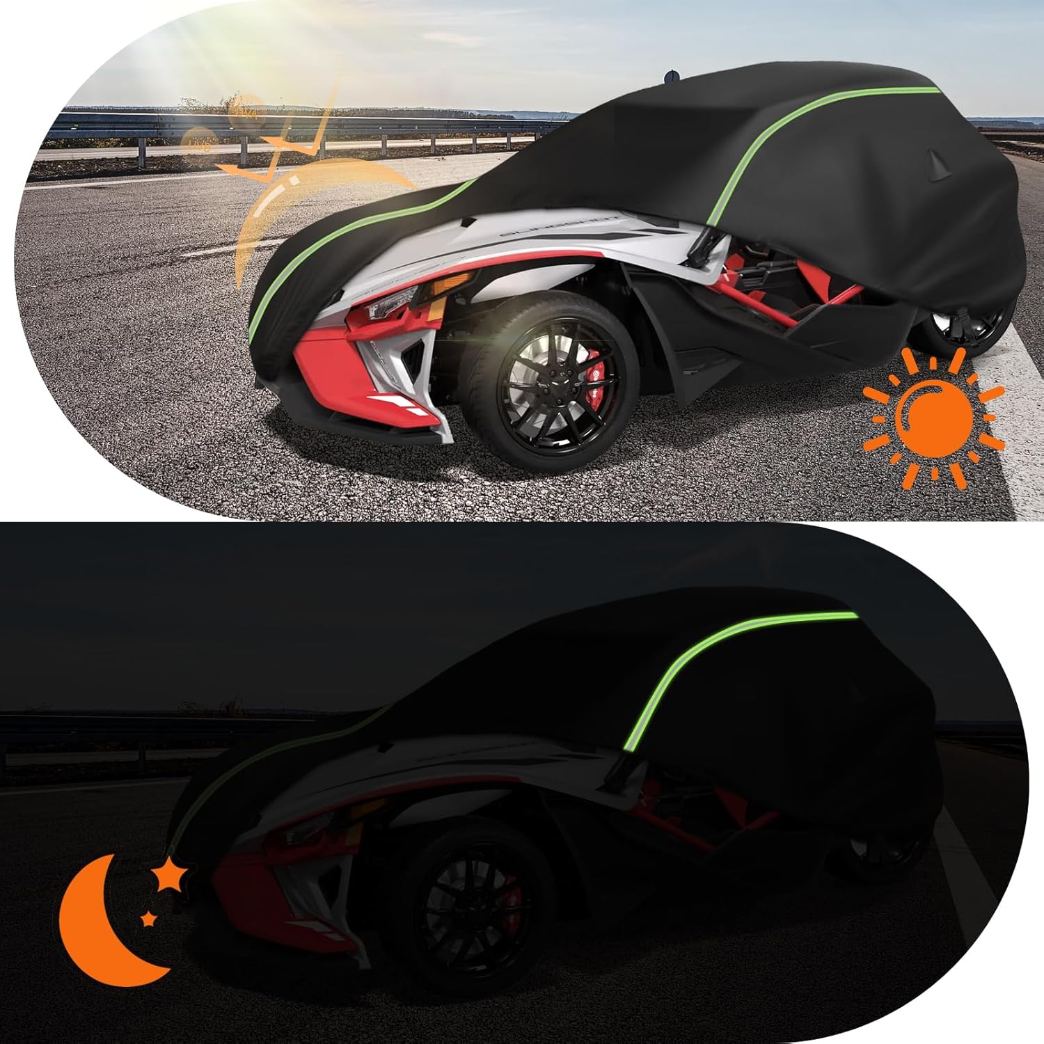 - Reflective Strip Design: Polaris covers feature two reflective strips on each side to improve visibility in low light conditions and provide scratch protection as people pass by.