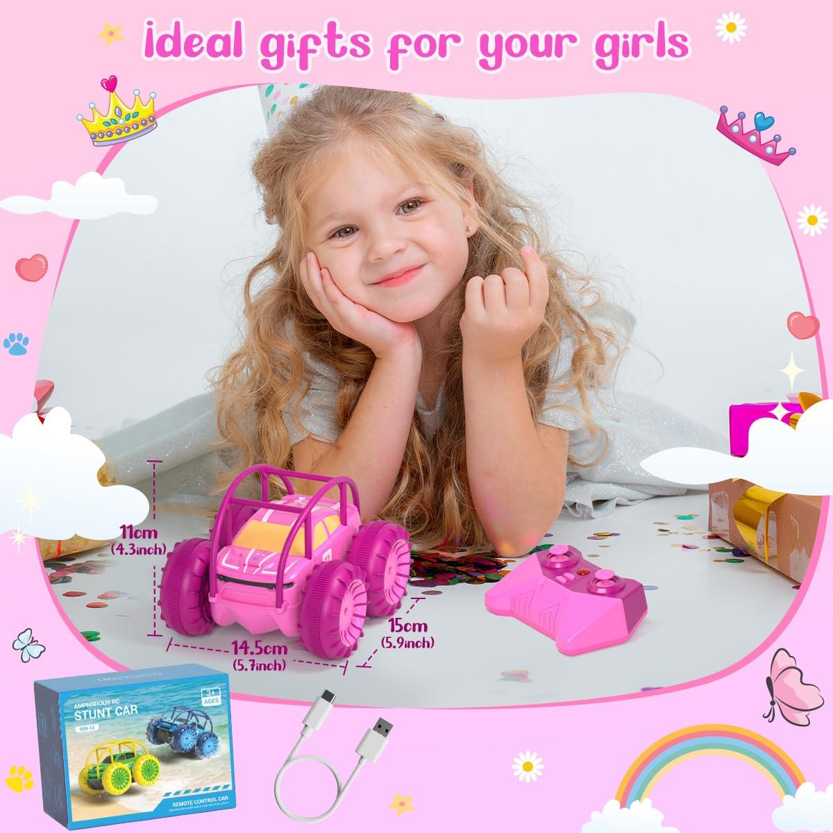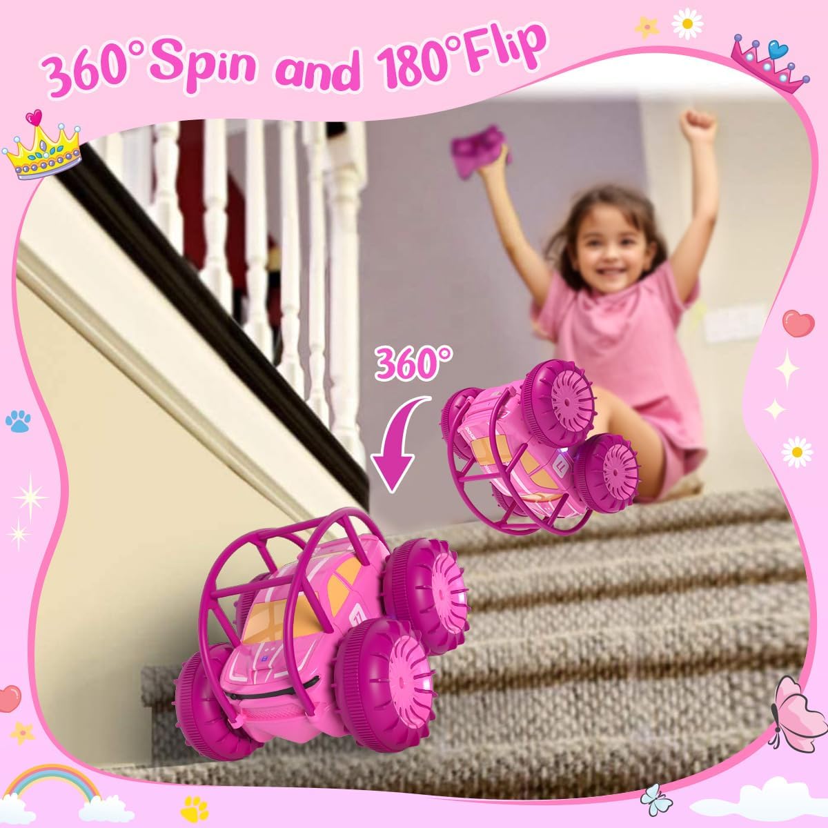 • Fancy Stunts, Colorful LED - This electric stunt car with unique protective cage enables 360° flips and turns. The bright, colorful and flashing LED lights can attract children's attention at once, this toy car for kids use strong material very suitable for children to play. It is indeed the perfect birthday, holiday, christmas gift for boys and girls aged 3-12.
