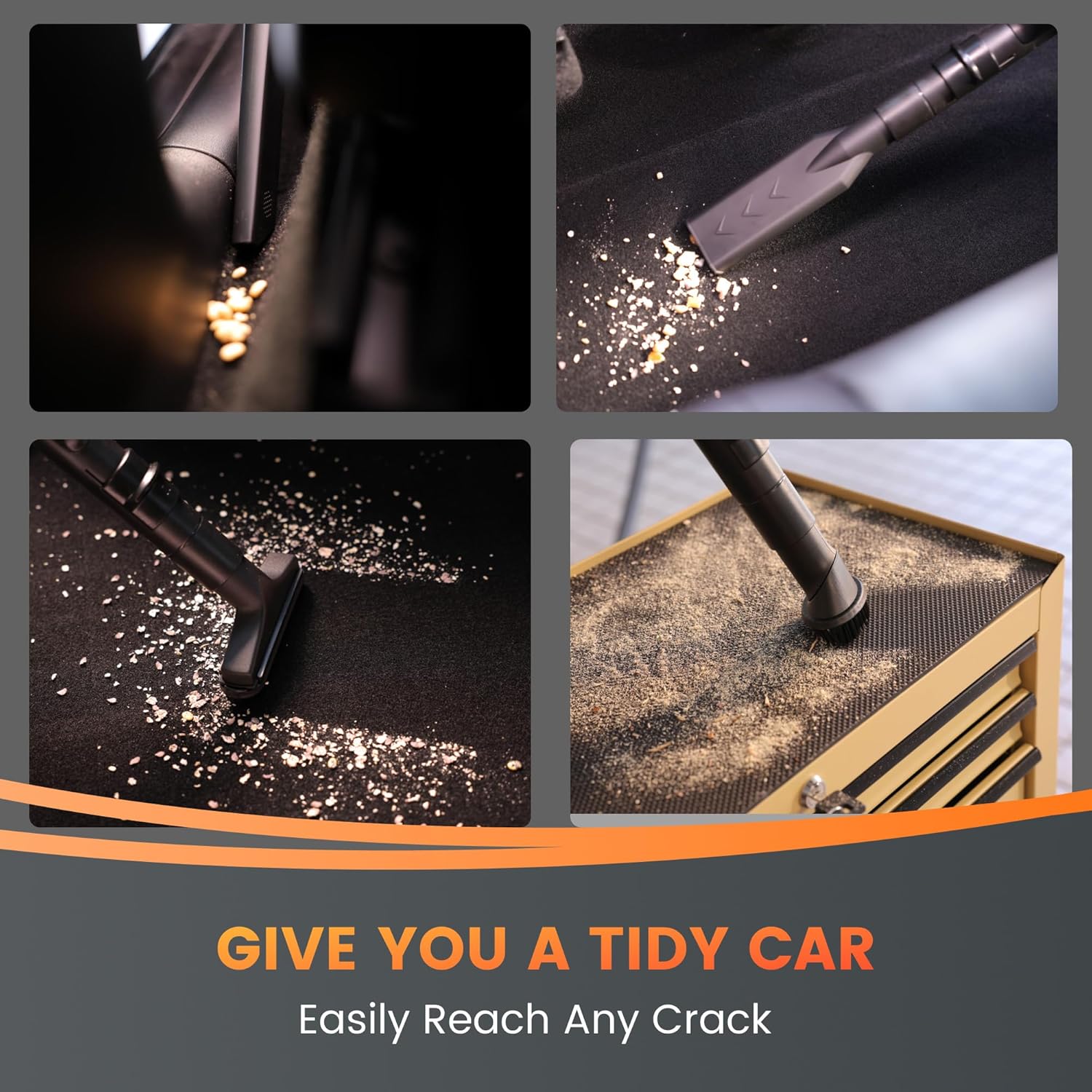 - Strong Motor: The powerful motor delivers 20 KPA strong suction ensures cleaning performance tailored to different cleaning needs. A perfect car detailing vacuum for the garage.