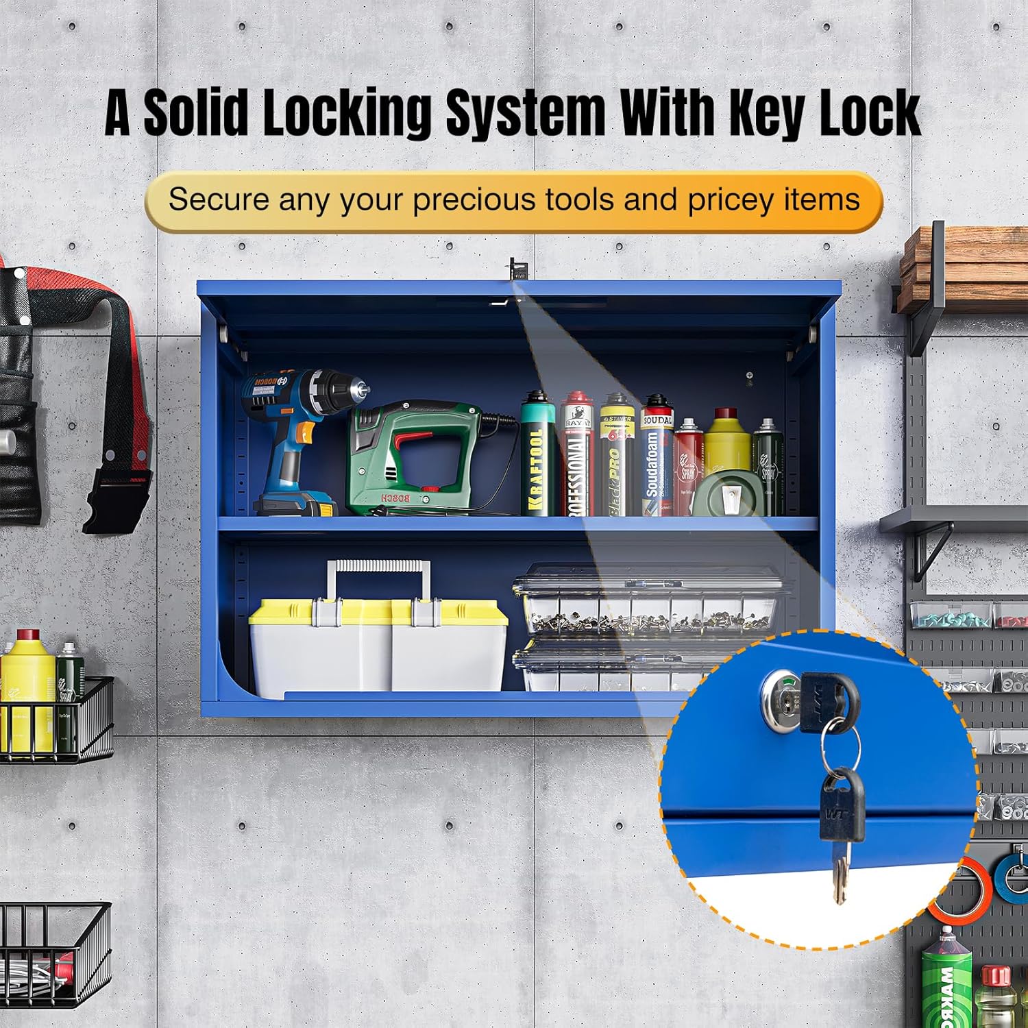 - â â€ăA solid locking systemă: This wall storage cabinet comes with a lock with 2 keys, which is a plus to secure any important and pricey items that you are storing. The lockable feature is the cherry on top, ensuring your precious tools are safe from pesky tool gnomes.