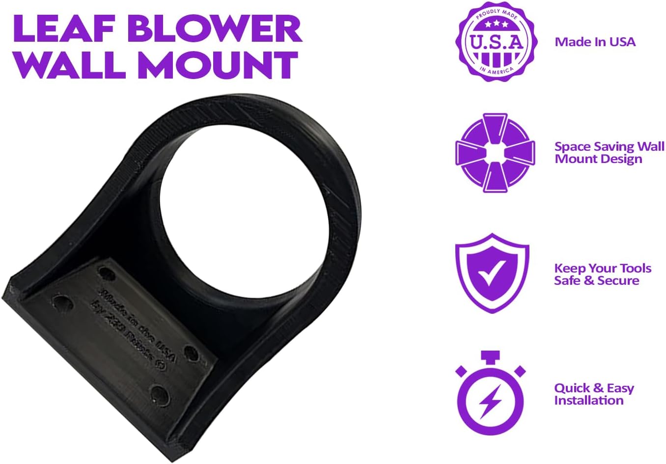 - DURABLE DESIGN – Made in the USA from high-quality plastic, this sleek blower rack and wall mount resists cracking and deforming, providing a secure and stable solution for your heavy leaf blower