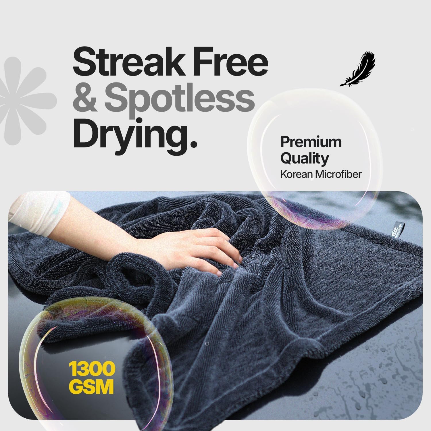 - TREAT YOUR PAINT WITH DELICACY: Crafted from 1300GSM thick Korean microfiber, these edgeless towels ensure scratch-free, gentle drying while protecting your car’s clear coat from micro-marring for a flawless finish