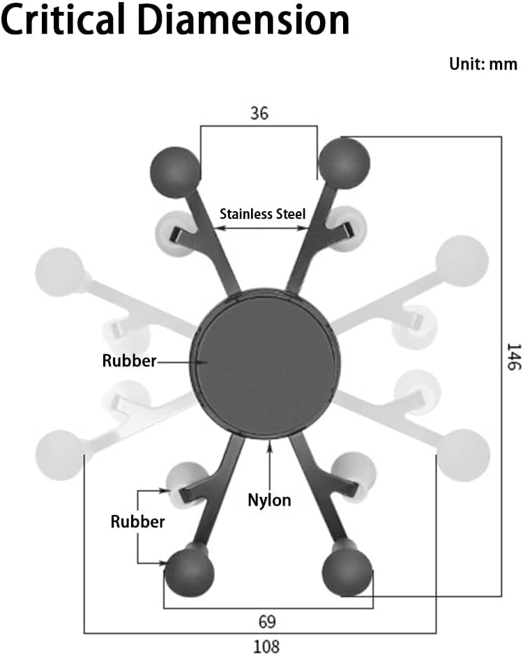 - Phone holder made of stainless steel components and high-strength composite for durability and reliability in the most demanding environments