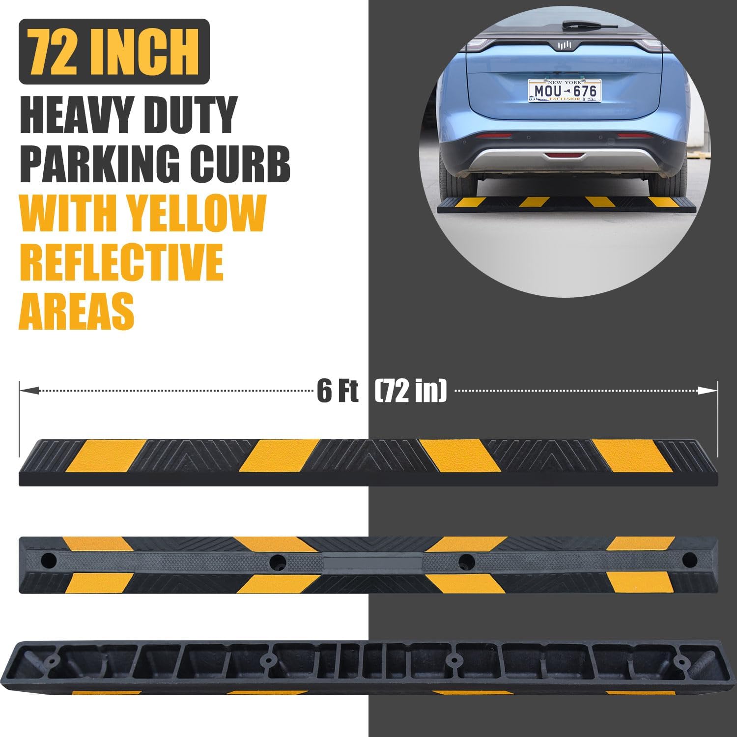 72" in 6' Ft Heavy-duty Rubber Parking Curb, Installation Kits Included, Parking Garage Floor Stopper, Wheel Stopper for Vehicles Truck Driveway Protect Cars Vans Trucks Pumpers (72" - 2Pack)